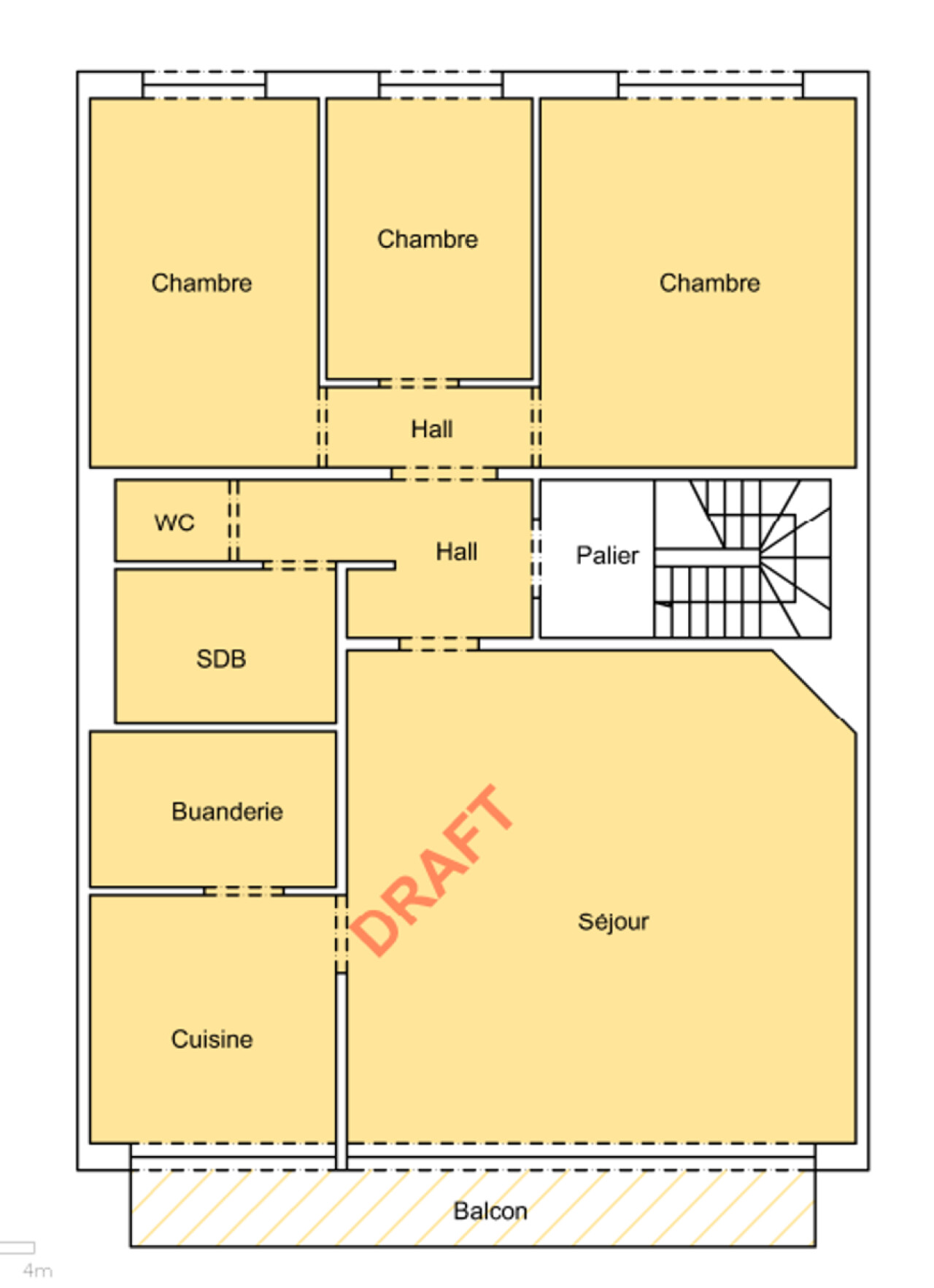 L’appartement dispose en outre de trois chambres (16 m² – 12 m² – 8 m²), d’une salle de bains rénovée avec douche à l’italienne et d’un WC séparé.