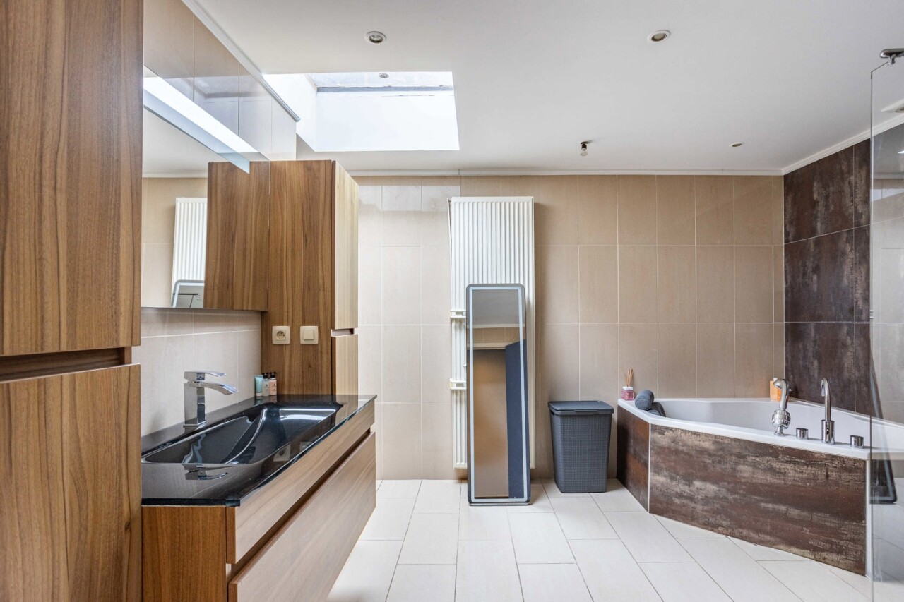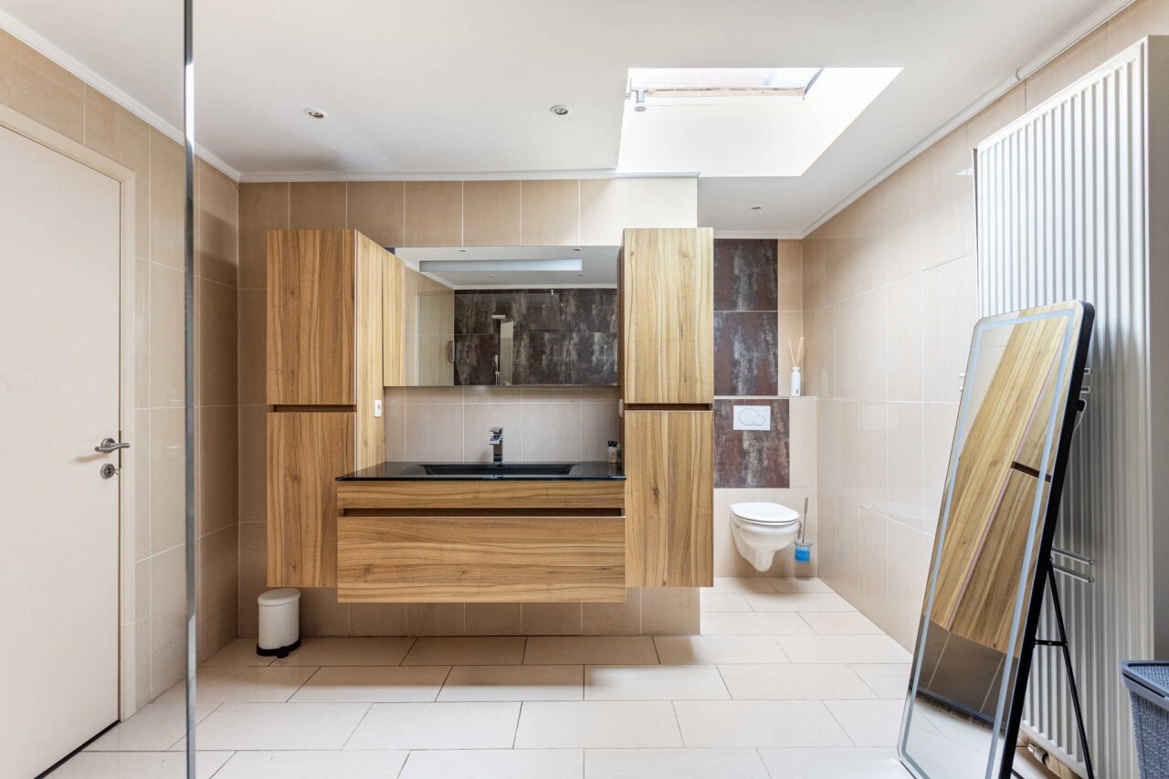 Le rez-de-chaussée comprend également un espace polyvalent, idéal comme bureau, cabinet ou chambre supplémentaire. Vous y trouverez en outre deux grandes chambres, un bureau, une salle de bains équipée d’une douche à l’italienne et d’un bain à bulles, ainsi qu’une grande buanderie séparée. Au premier étage, vous trouverez encore deux chambres spacieuses supplémentaires d’environ 30 m² chacune.