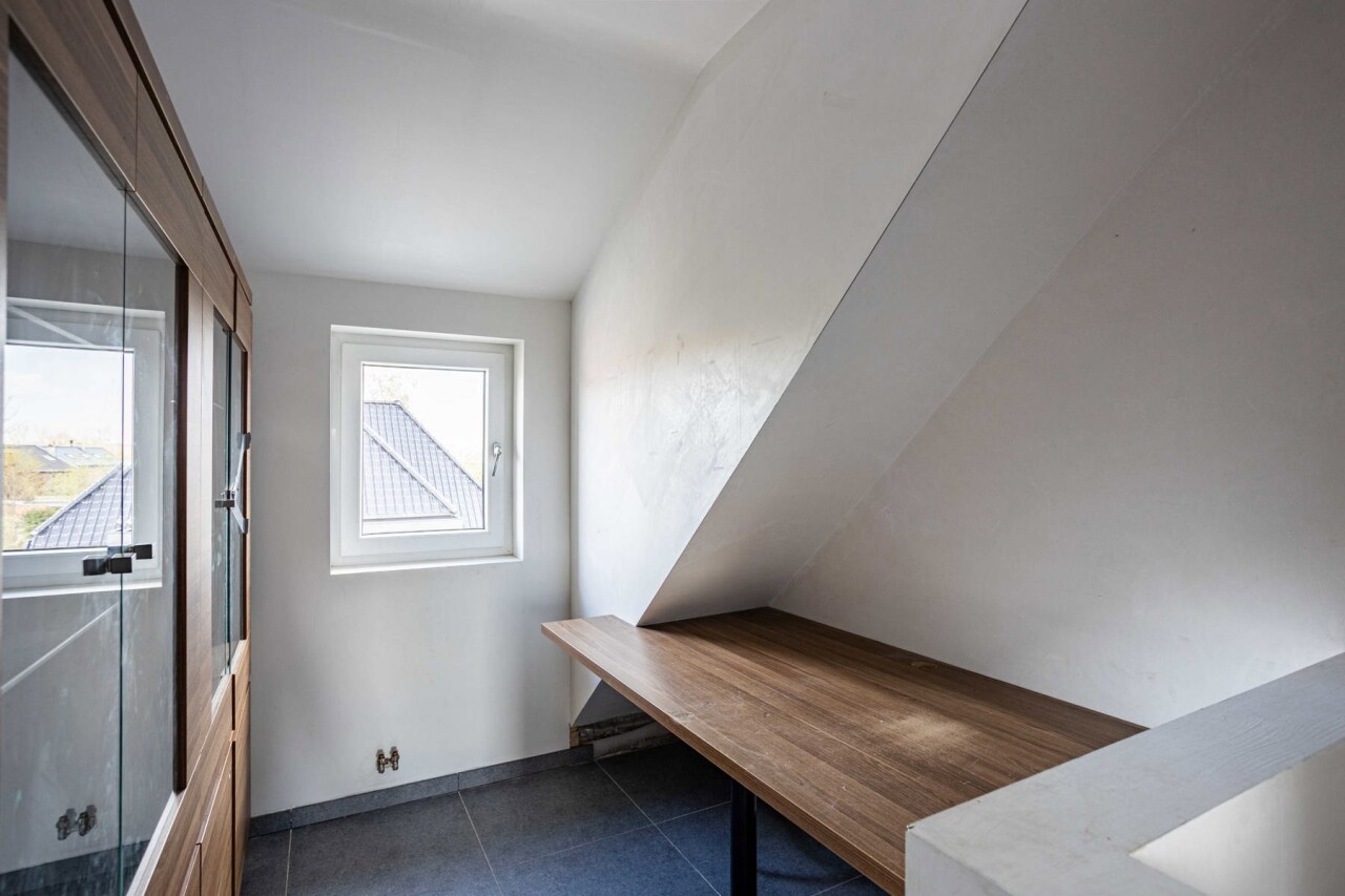 Au premier étage, vous trouverez deux chambres (17 m² et 15 m²), une salle de bain entièrement rénovée avec douche et baignoire, ainsi qu’un WC séparé. Le deuxième étage offre encore deux belles chambres (14 m² et 14 m²) ainsi qu’un local technique avec placards intégrés.