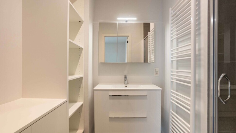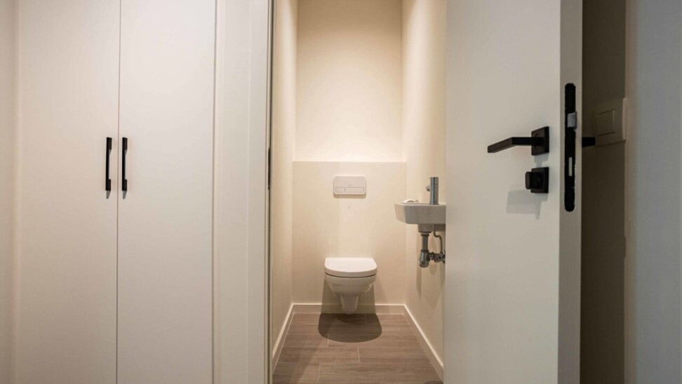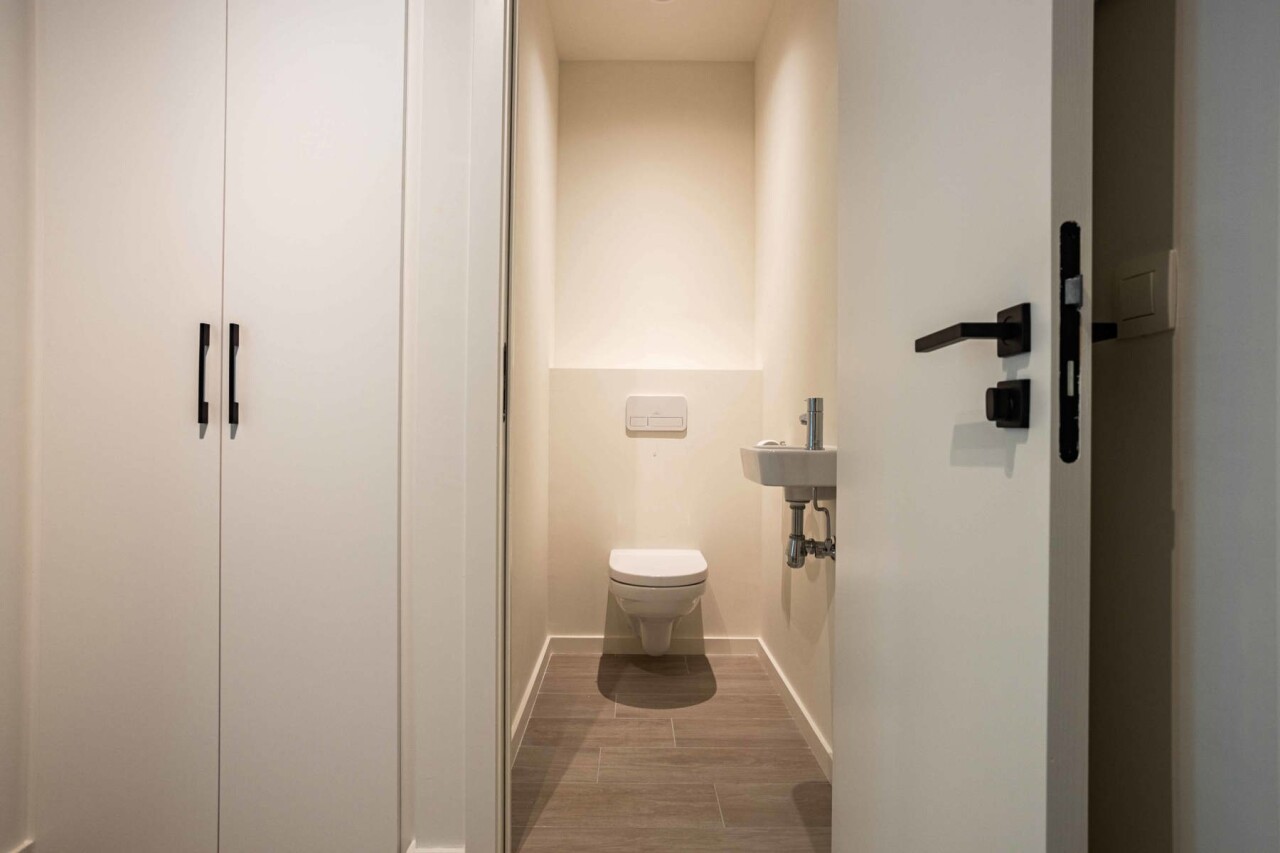 We betreden het appartement via een ruime inkomhal met berging en gastentoilet.