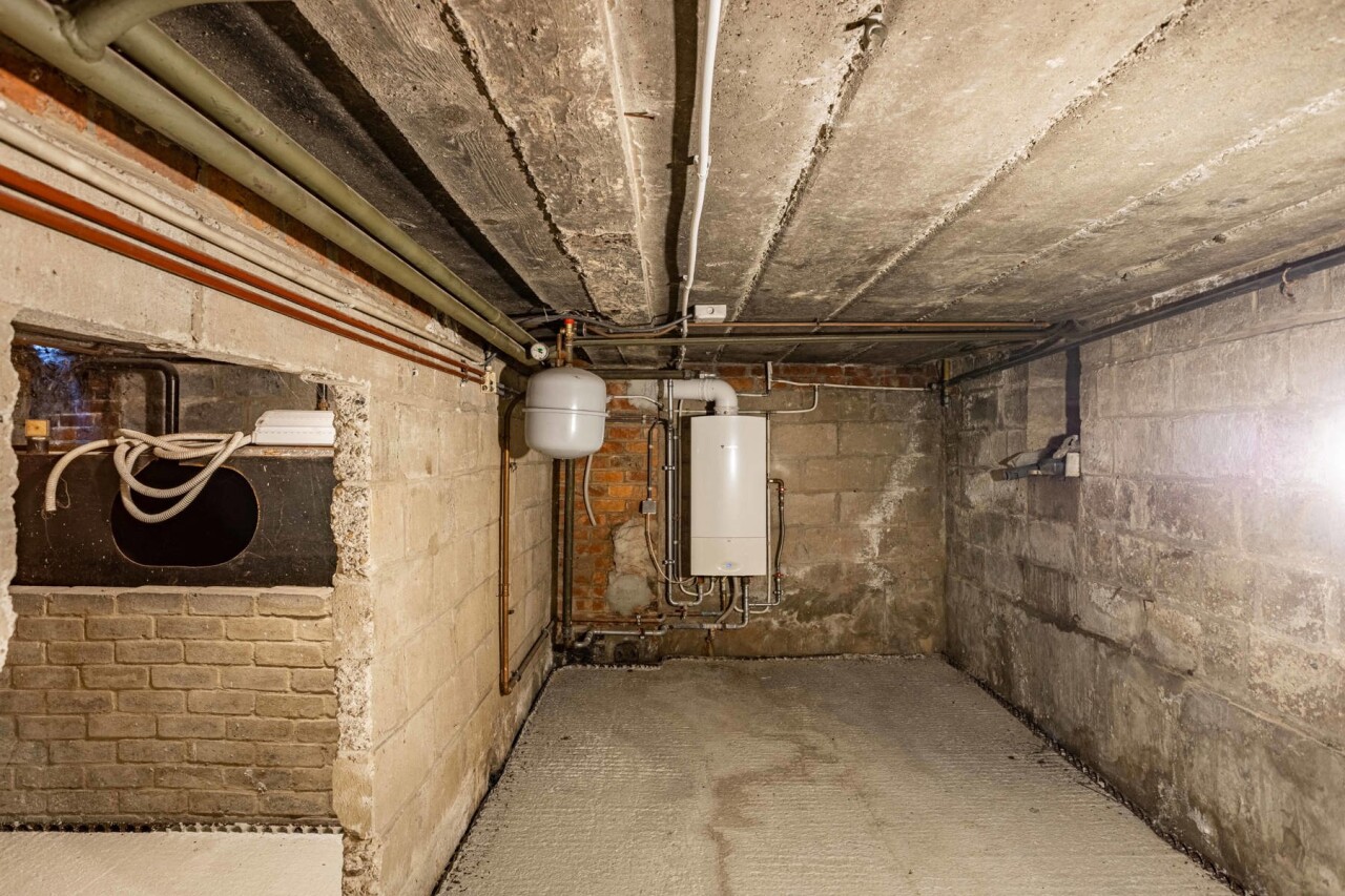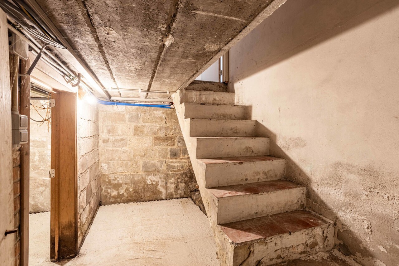 Het gebouw is deels onderkelderd en werd in 2023 voorzien van een drainage-laag met betonplaat.