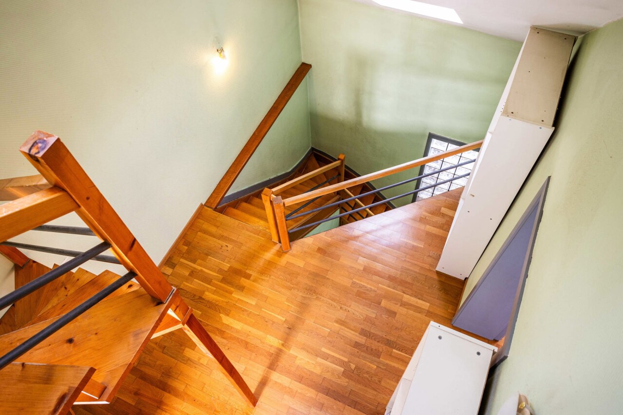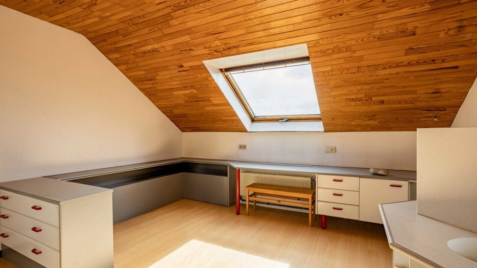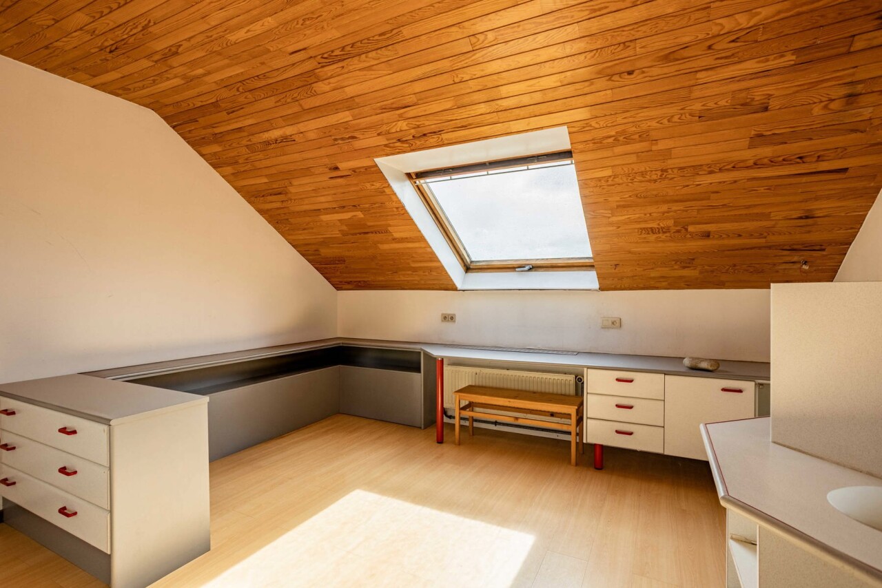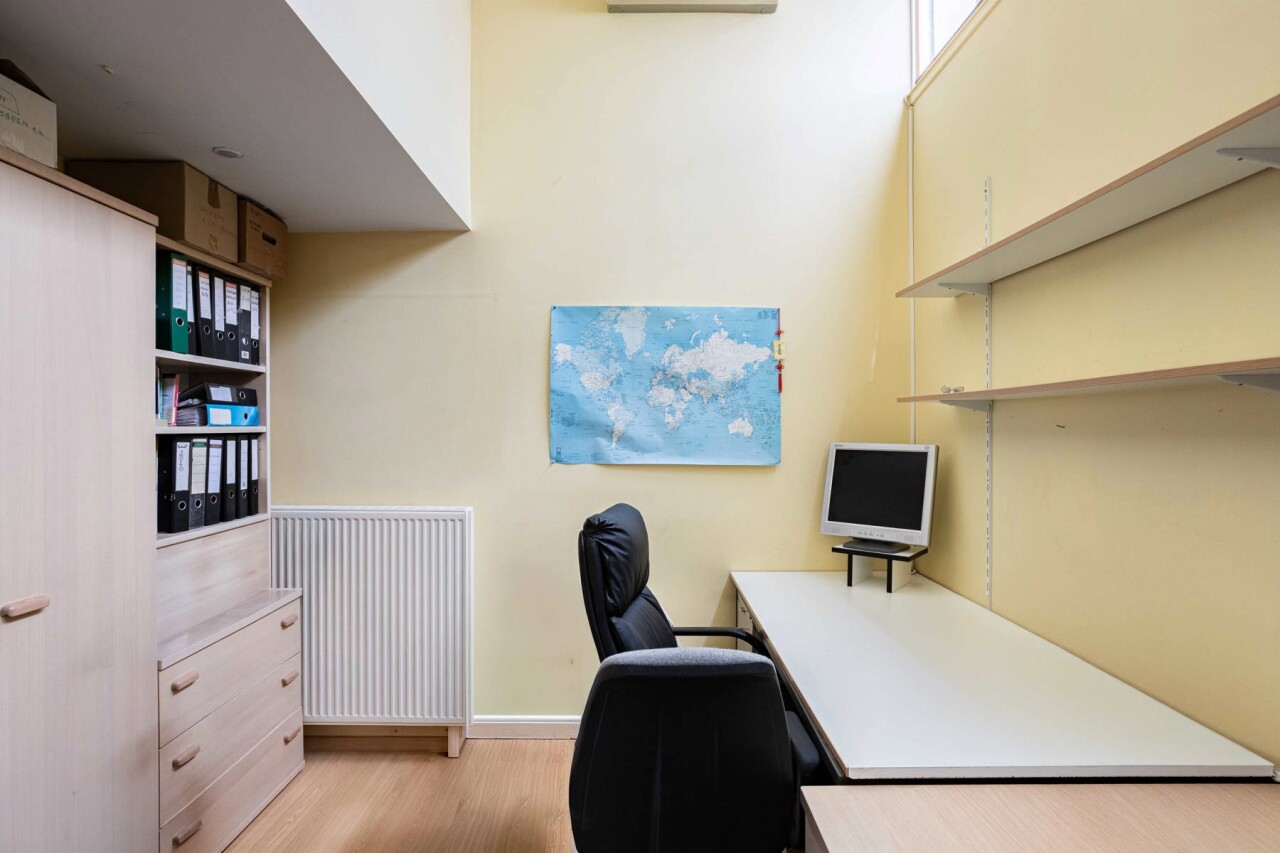 De achterliggende loods, met sectionaal poort, werd steeds gebruikt als schrijnwerkerij. Het gelijkvloers van 295m² heeft een praktische indeling waardoor het gebruikt kan worden voor vele doeleinden. Bovendien genieten we op het verdiep van een extra 91m² welke kan gebruikt worden voor opslagruimte OF eventueel mee kan worden opgenomen in het bewoonbaar gedeelte.