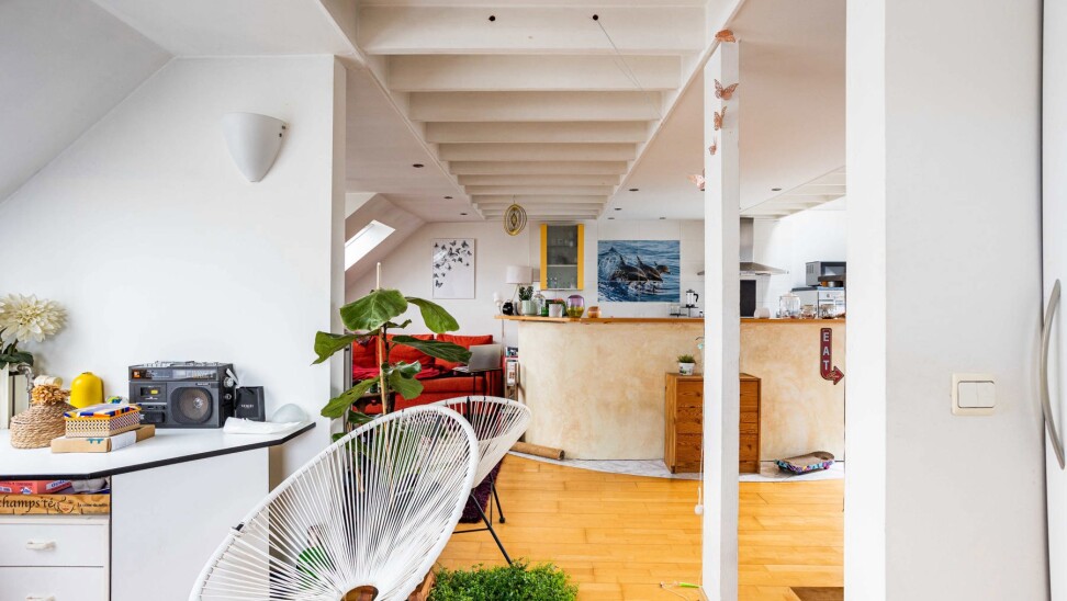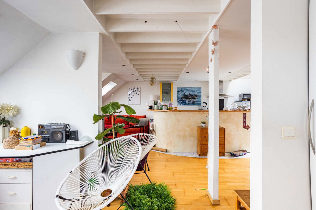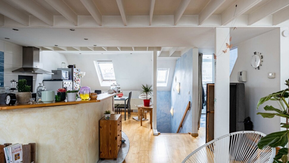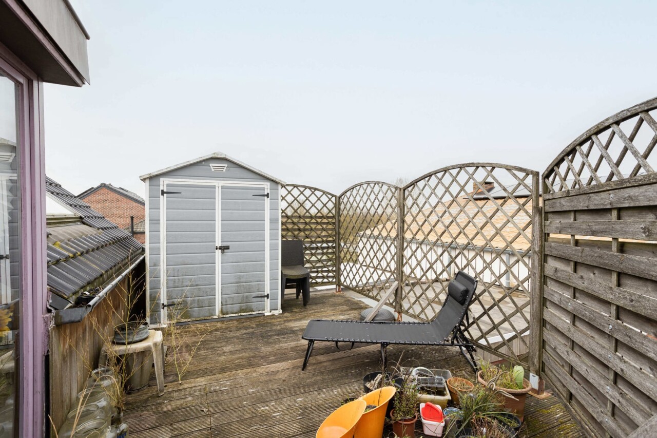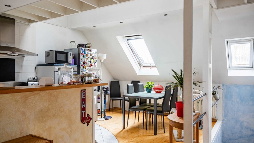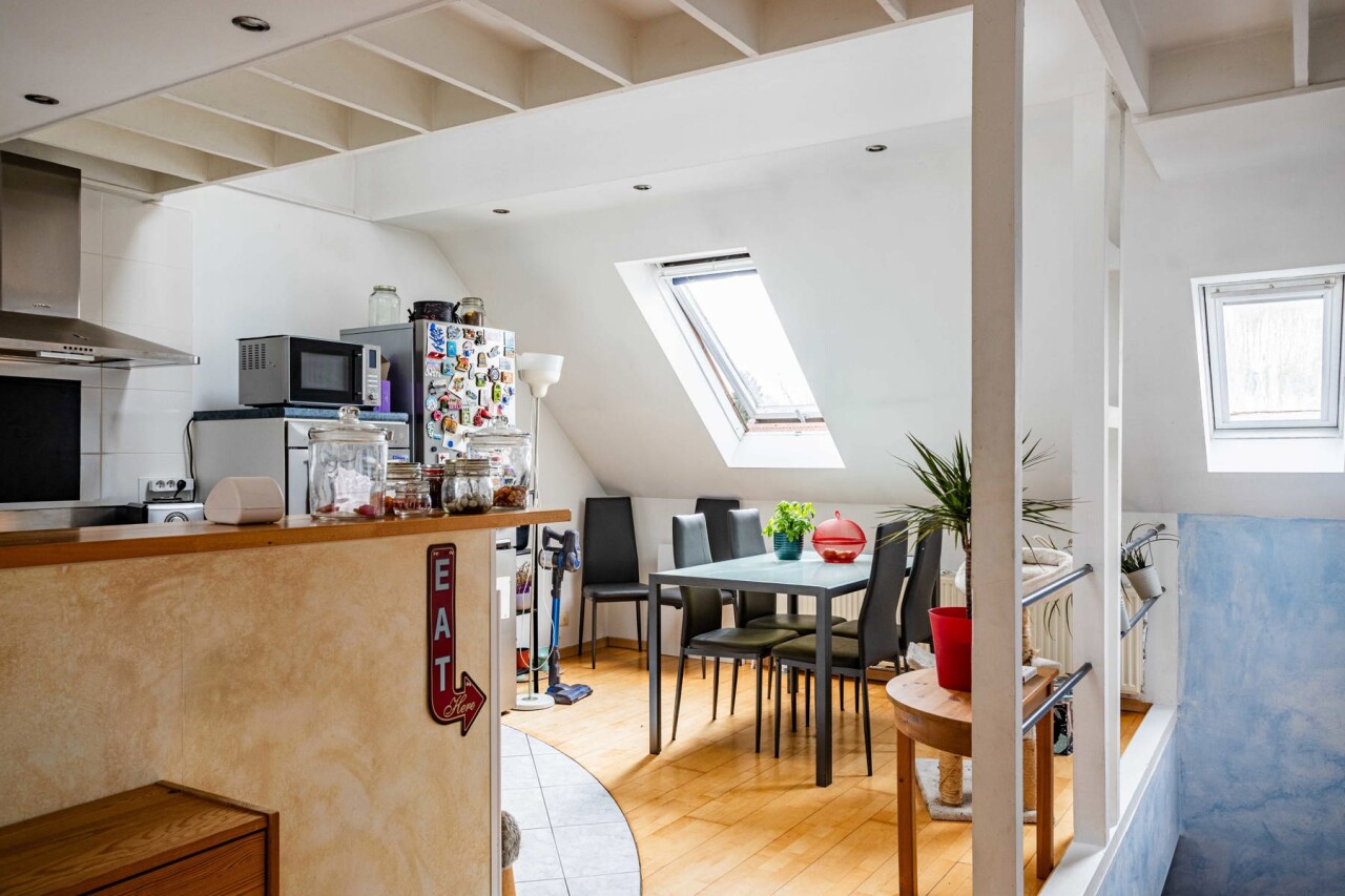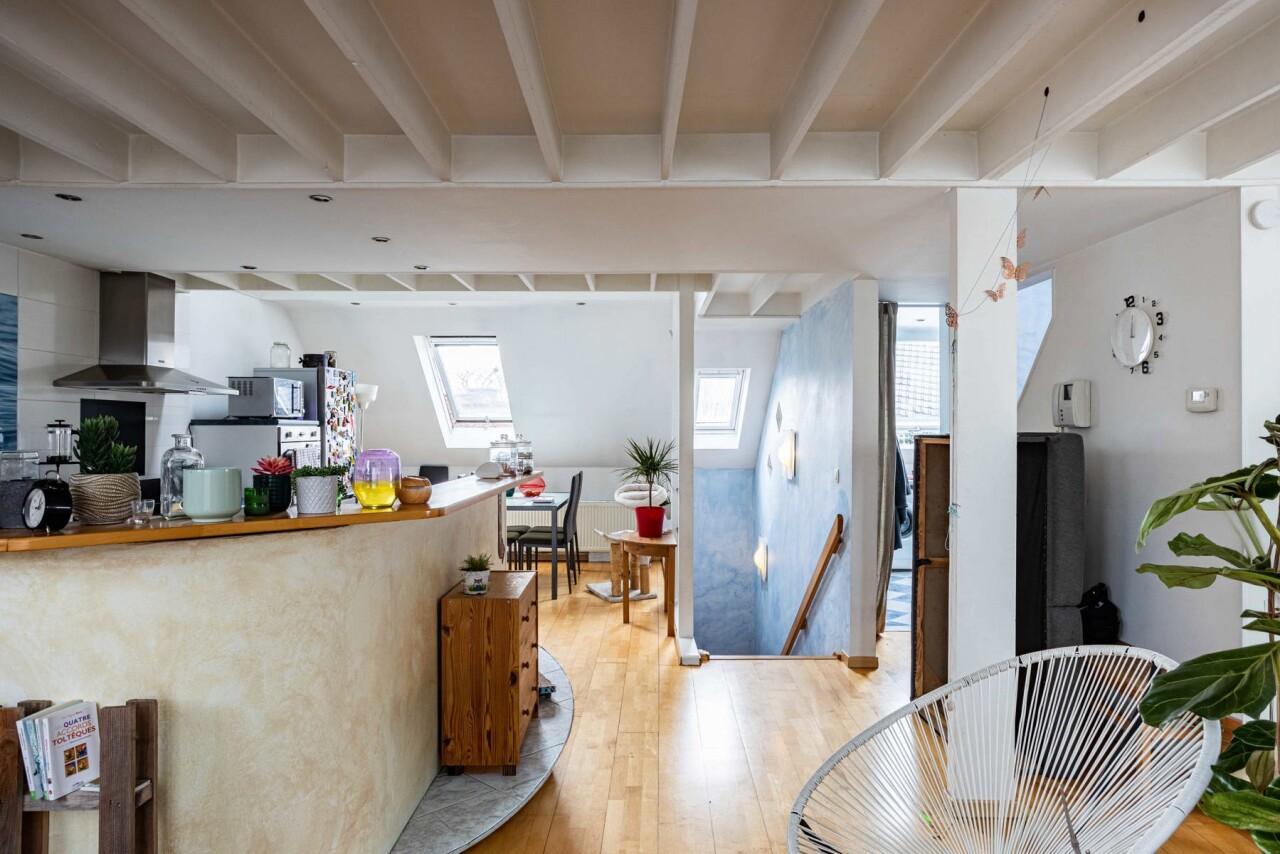 De triplex telt een bruikbare opp van 148m², voorzien van 4 slaapkamers, een halfopen keuken en badkamer.