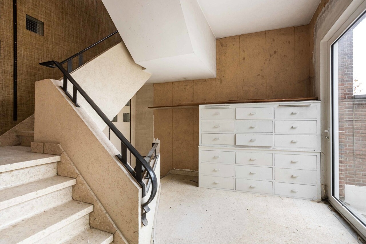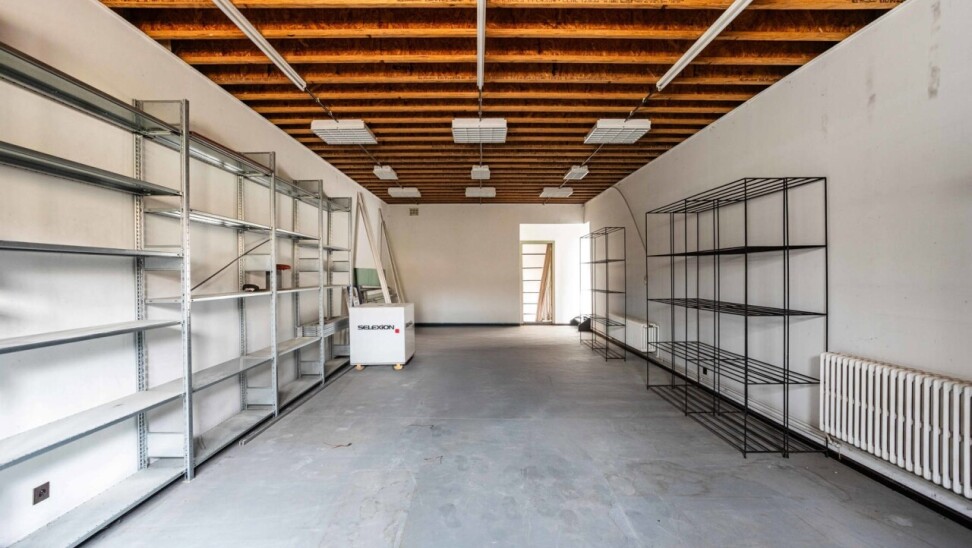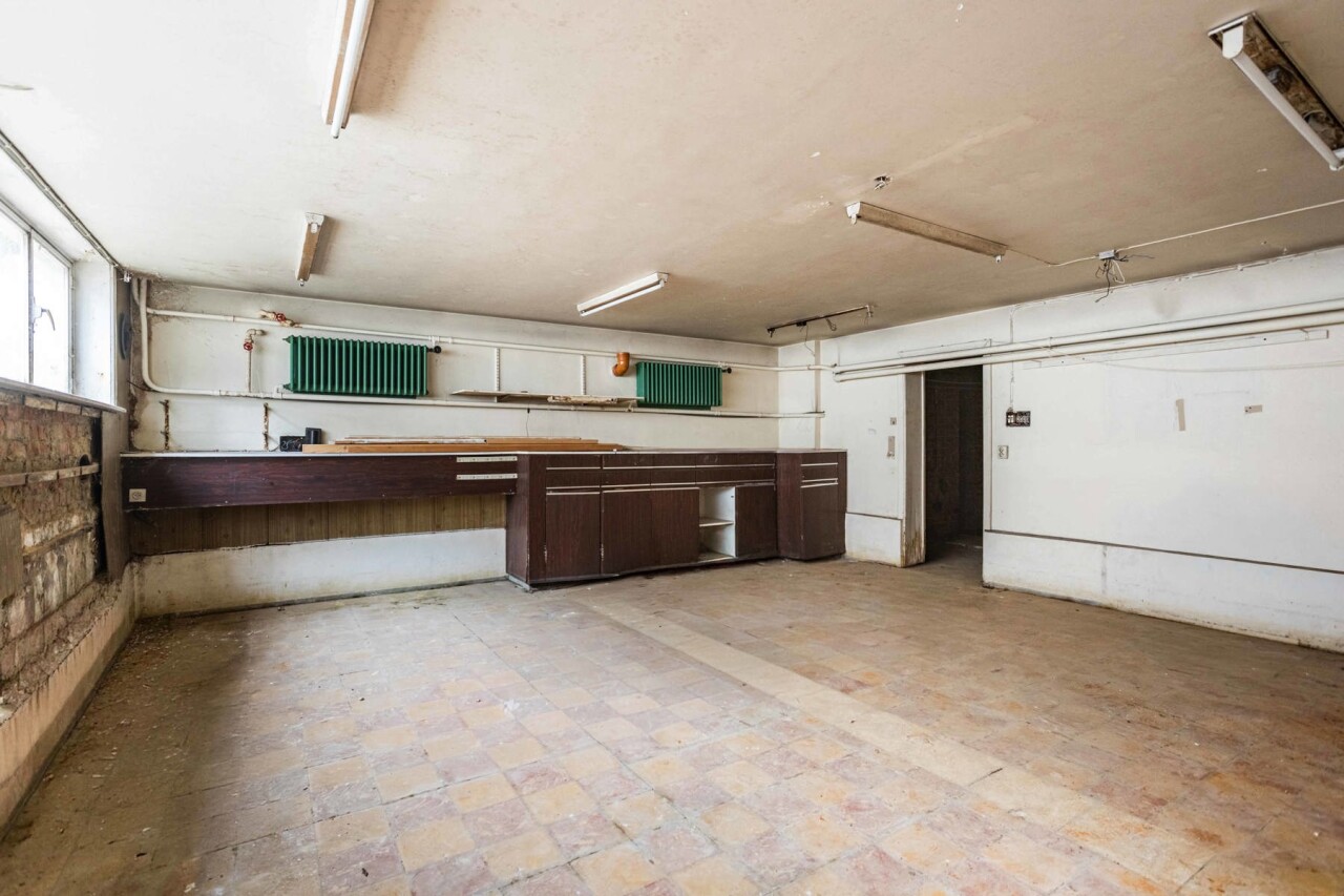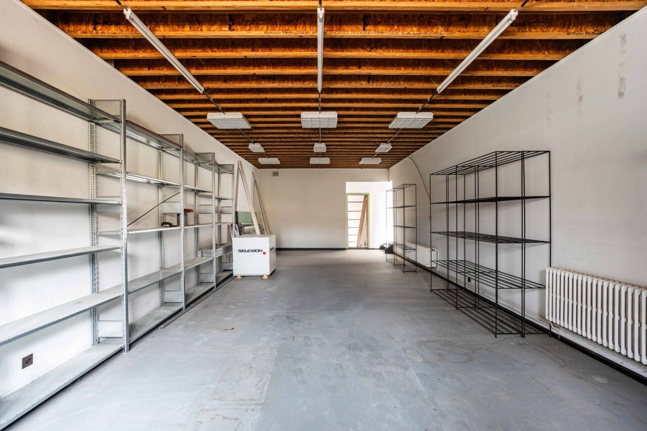 Achteraan bevinden zich bijkomende ruimtes met een totale oppervlakte van 110 m² — ideaal om in te richten als bureauruimtes, berging of andere professionele doeleinden.
