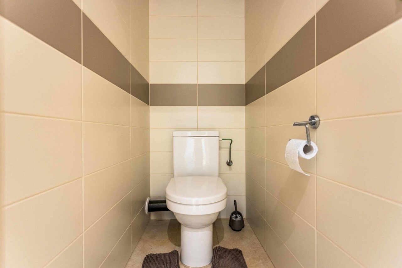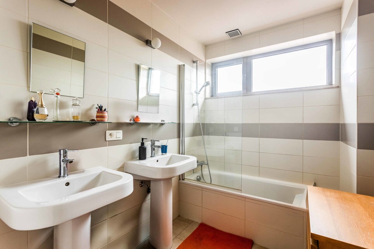 Het tweede verdiep beschikt over 2 slaapkamers (15-11m²), een badkamer met ligbad en dubbele lavabo en een aparte toiletruimte.