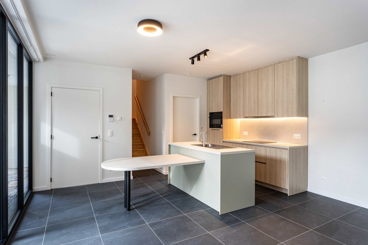 De woning werd afgewerkt met kwalitatieve materialen en is voorzien van verlichting, verduistering in de slaapkamers en parket op de eerste verdieping.