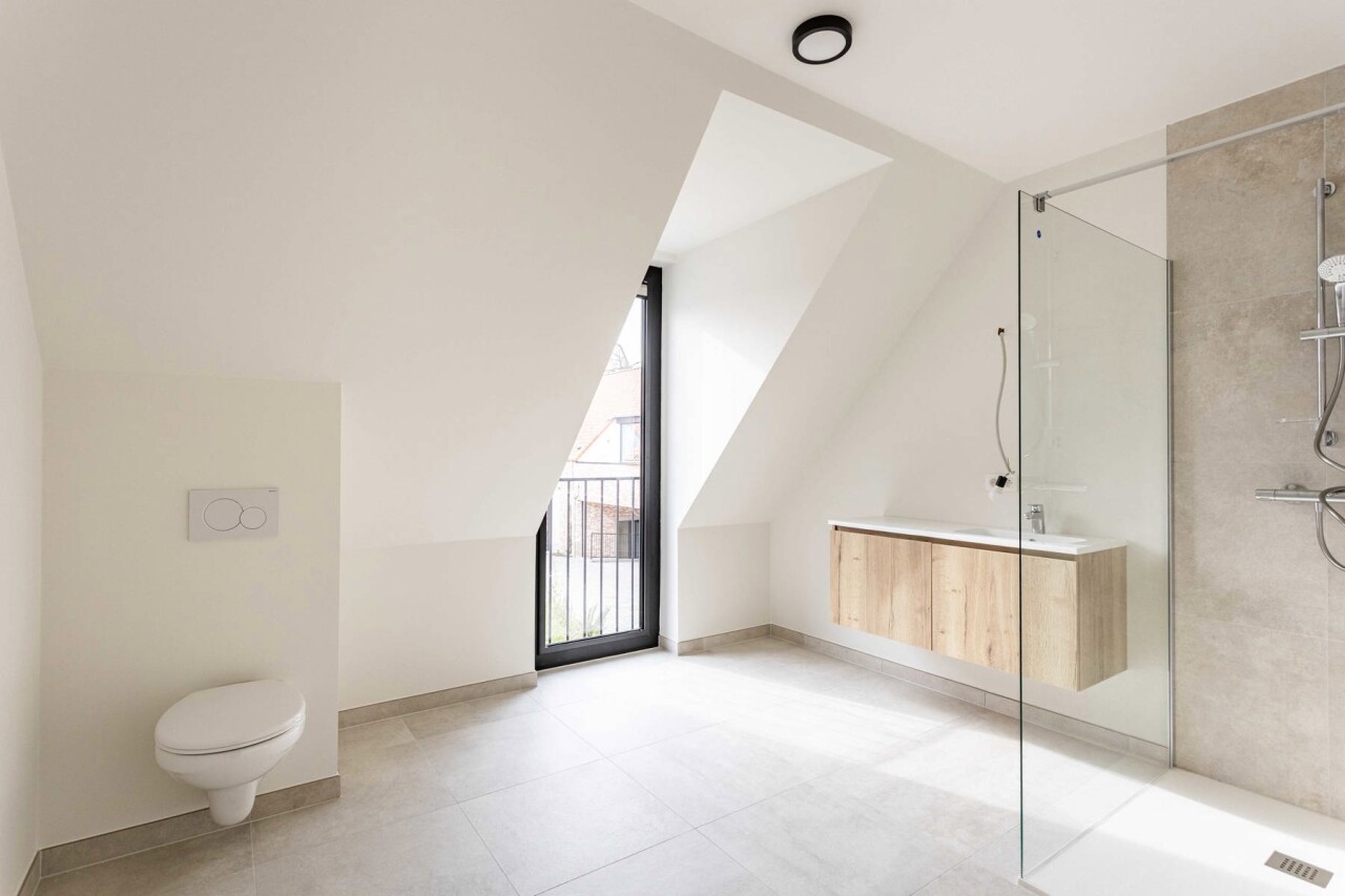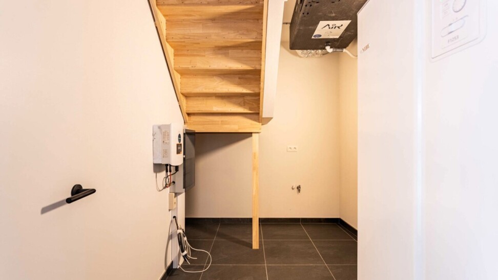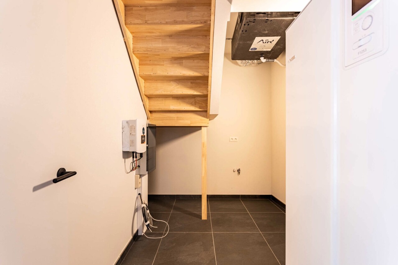 Extra troeven: grote fietsenberging, privatieve kelderruimte (10m²), een overdekte autostaanplaats (met mogelijkheid tot het plaatsen van een laadpaal) en individuele tellers voor water, gas en elektriciteit.