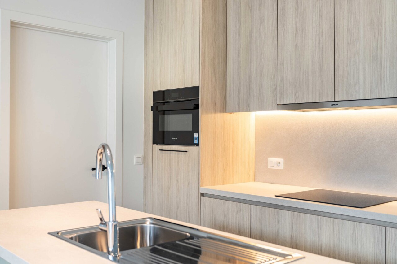 Binnenkomen doet u via een ruime en lichtrijke inkomhal met gastentoilet. Vanuit de hal bereikt u de aangename leefruimte met open keuken. De keuken is volledig uitgerust, voorzien van alle comfort en straalt luxe uit. Aansluitend bevindt zich een praktische berging/wasplaats.