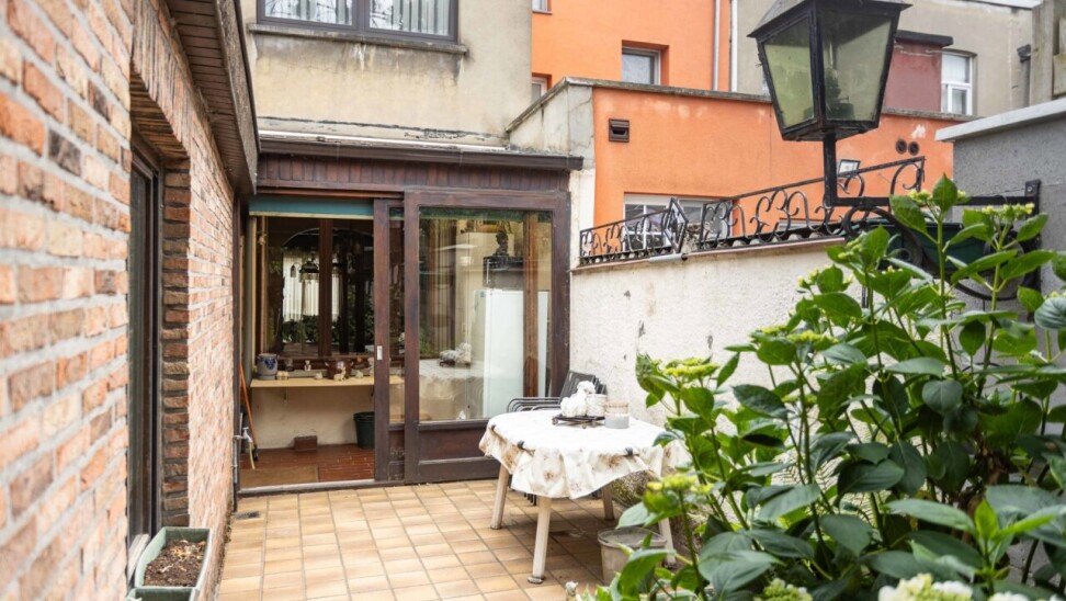 Op het gelijkvloers vinden we een lichtrijke woon- en eetkamer van 26 m², met aansluitend de keuken en bijkeuken. Verder is er een badkamer met bad, douche en dubbele lavabo, evenals een apart toilet. Vanuit de eetkamer heeft u zicht op de veranda/wasplaats en de gezellige stadstuin. Ideaal voor wie groene vingers heeft en graag tot rust komt in het hart van de stad.
