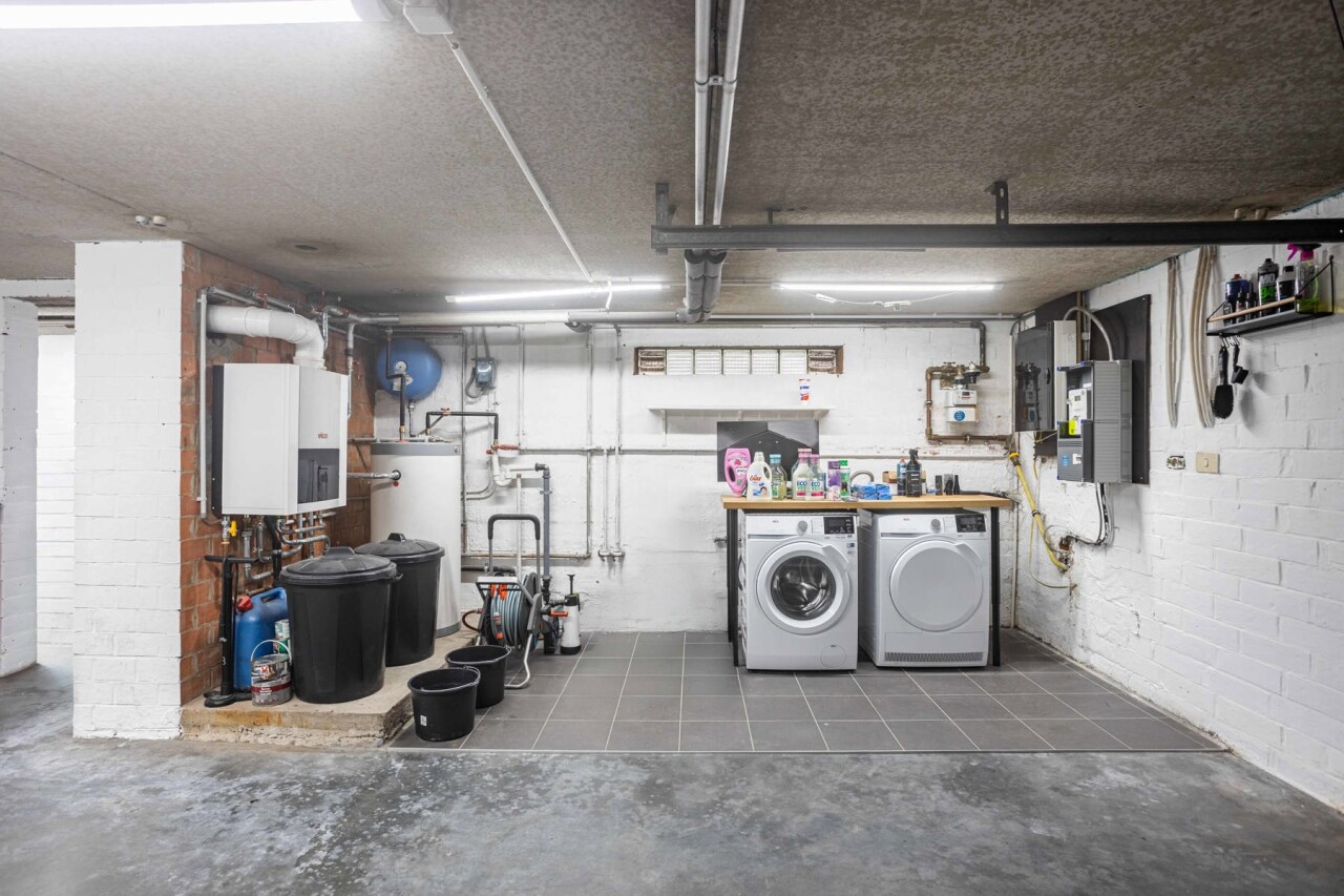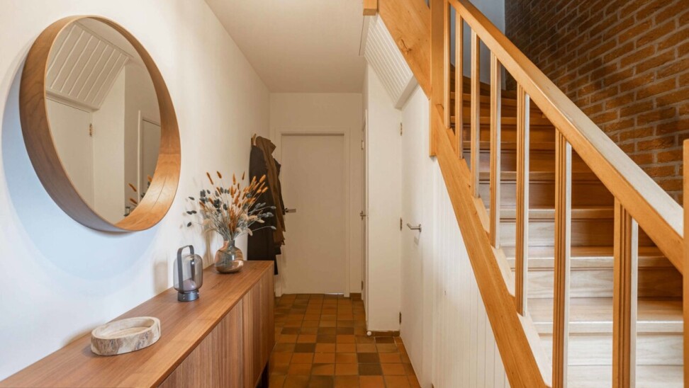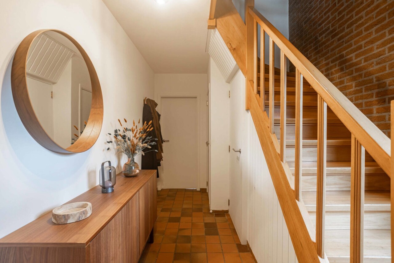 Via de inkomhal met apart gastentoilet betreden we de woning. Deze inkomhal geeft toegang tot de ruime en lichtrijke leef- en eetruimte van 43m², waar grote raampartijen zorgen voor een aangename lichtinval. Aansluitend bevindt zich de volledig gerenoveerde keuken (2022), uitgerust met alle hedendaagse comfort. Zowel de keuken als de eetkamer bieden een mooi zicht op de zuidwestgerichte tuin, ideaal om van de namiddag - en avondzon te genieten.