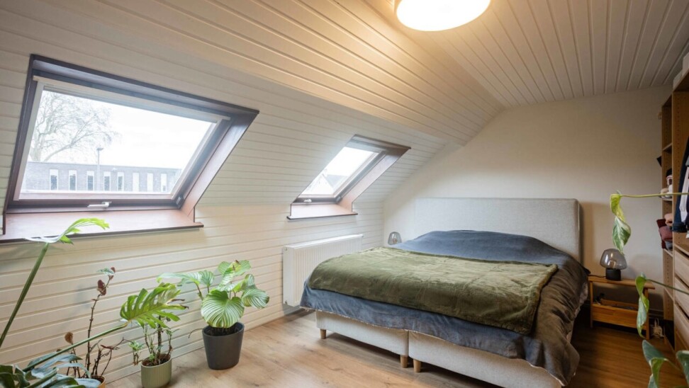 Via een uitschuifbare trap is er toegang tot een ruime opbergzolder.