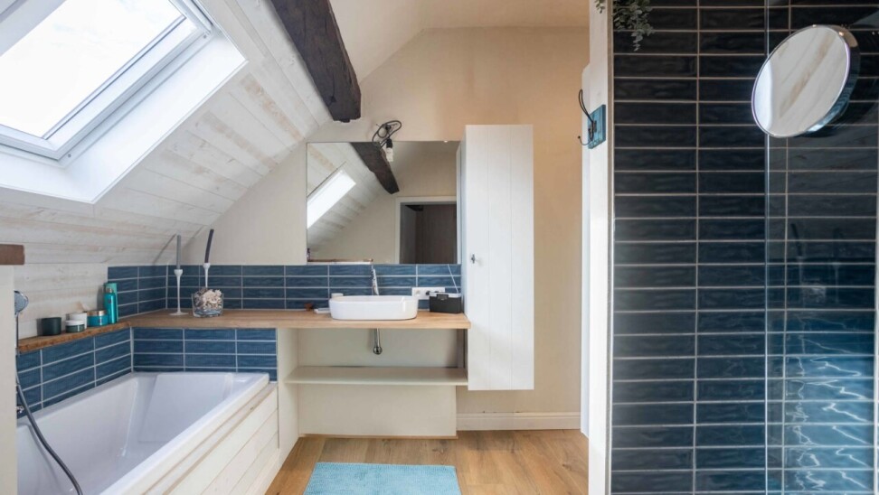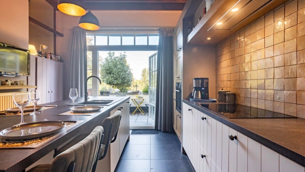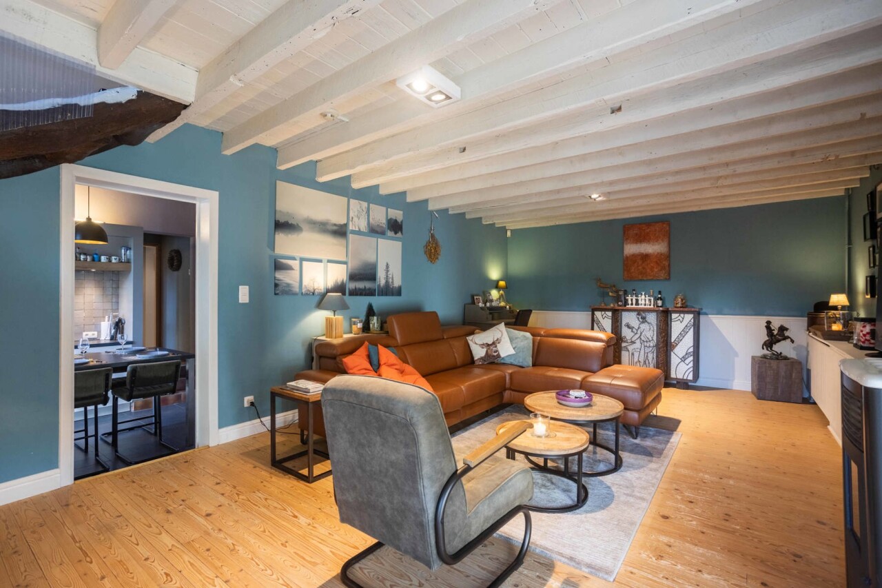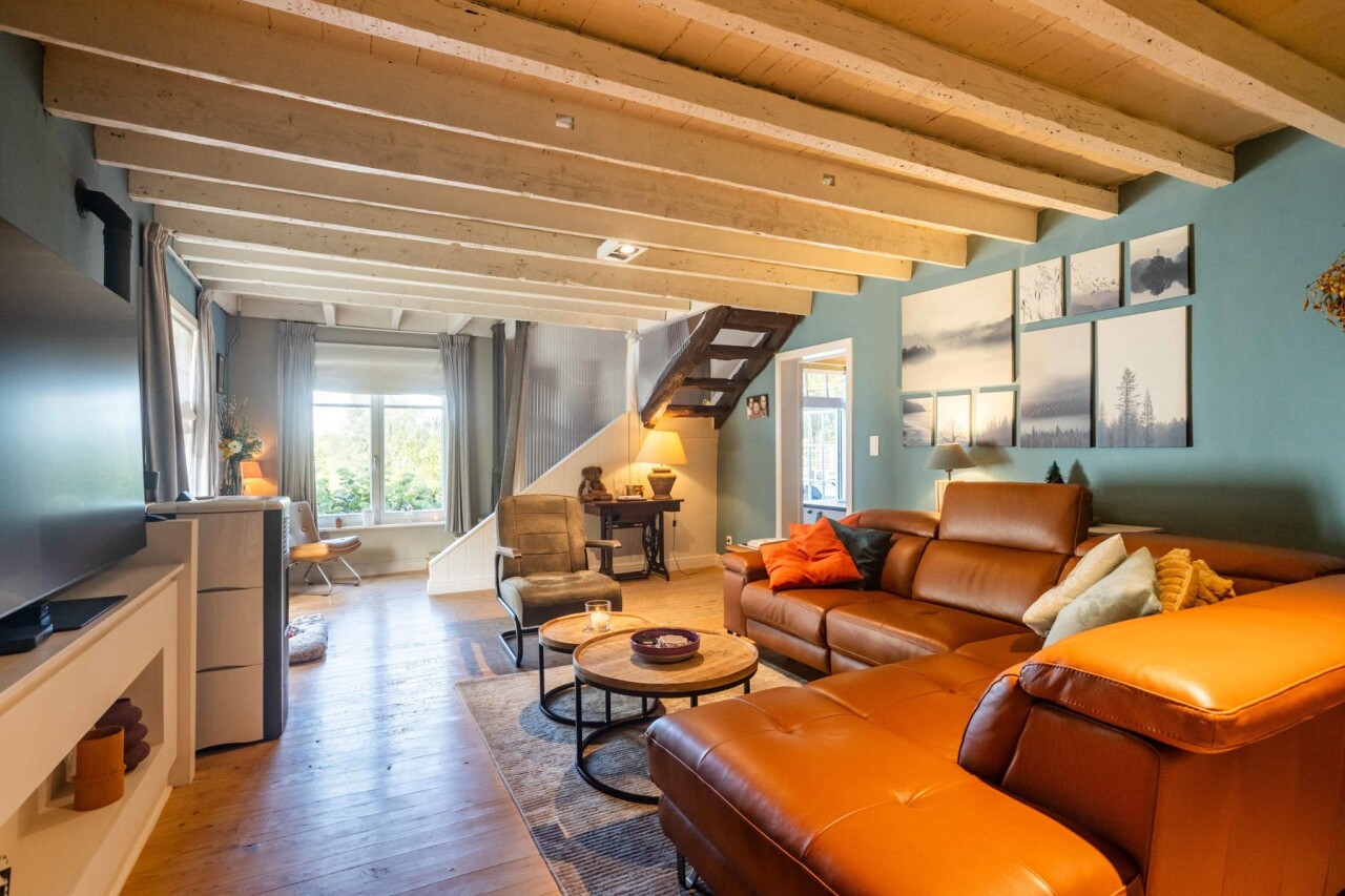 Verder vinden we een prachtige landelijke keuken, volledig uitgerust met alle comfort, die naadloos aansluit op een gezellige woonkamer. Aansluitend ligt een eetkamer en daarnaast een ruime hobbykamer. Het gelijkvloers beschikt bovendien over een sanitaire ruimte en een grote berging/ technische ruimte.
