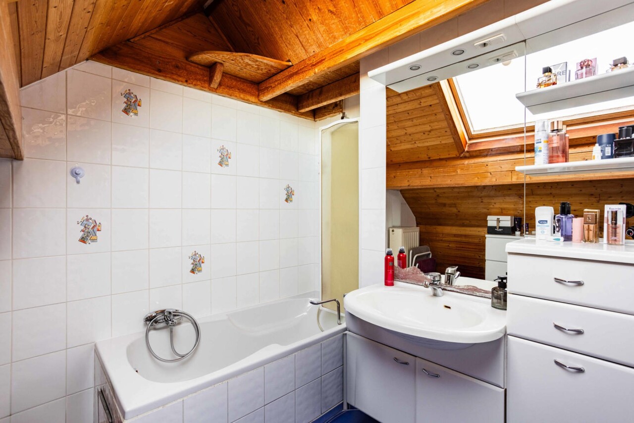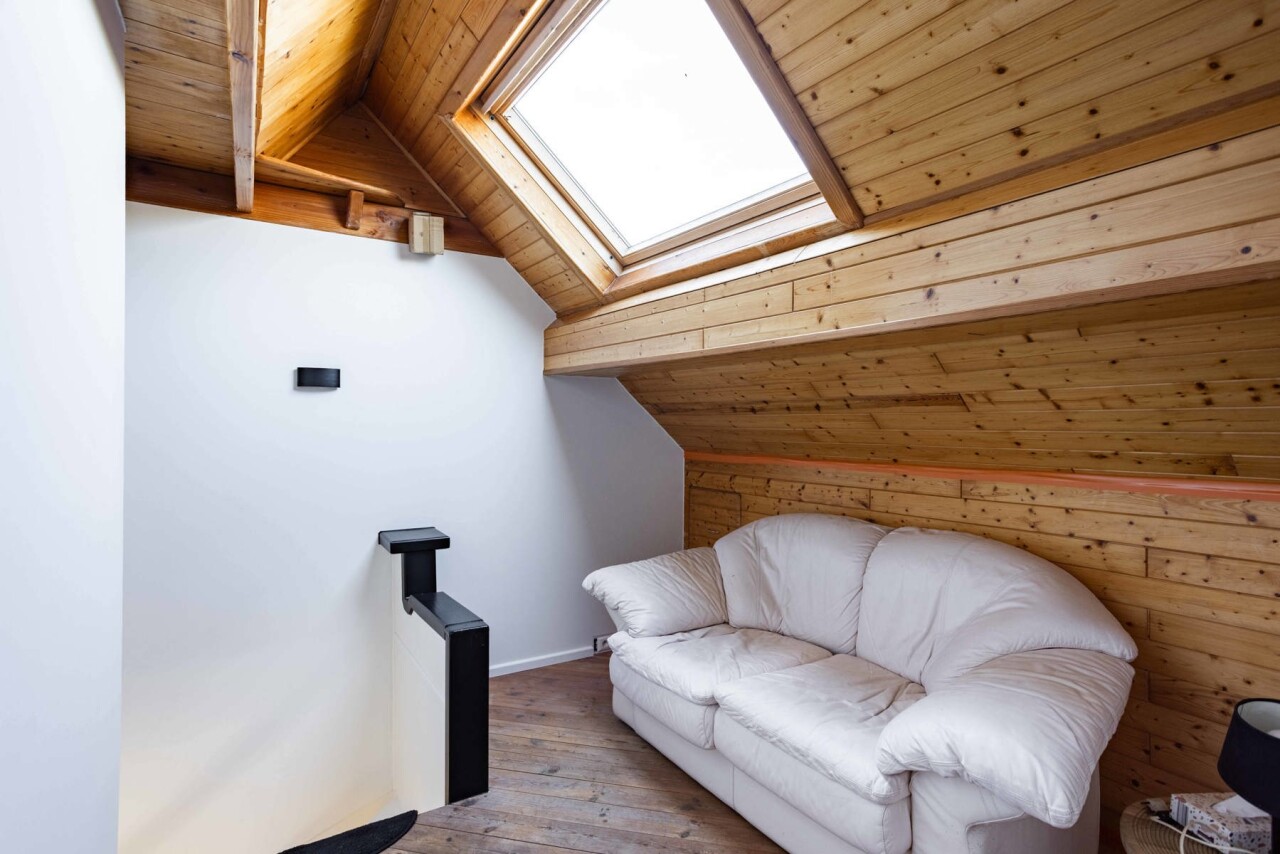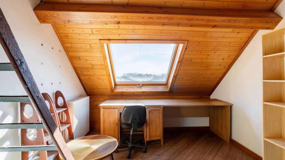 Op de eerste verdieping vinden we twee slaapkamers (17 m² en 12 m²), een bureauruimte (5 m²) en een volledig vernieuwde badkamer uitgerust met douche en toilet. De tweede verdieping beschikt over twee ruime slaapkamers (beide 19 m²) met mezzanine, evenals een tweede badkamer voorzien van bad en toilet.