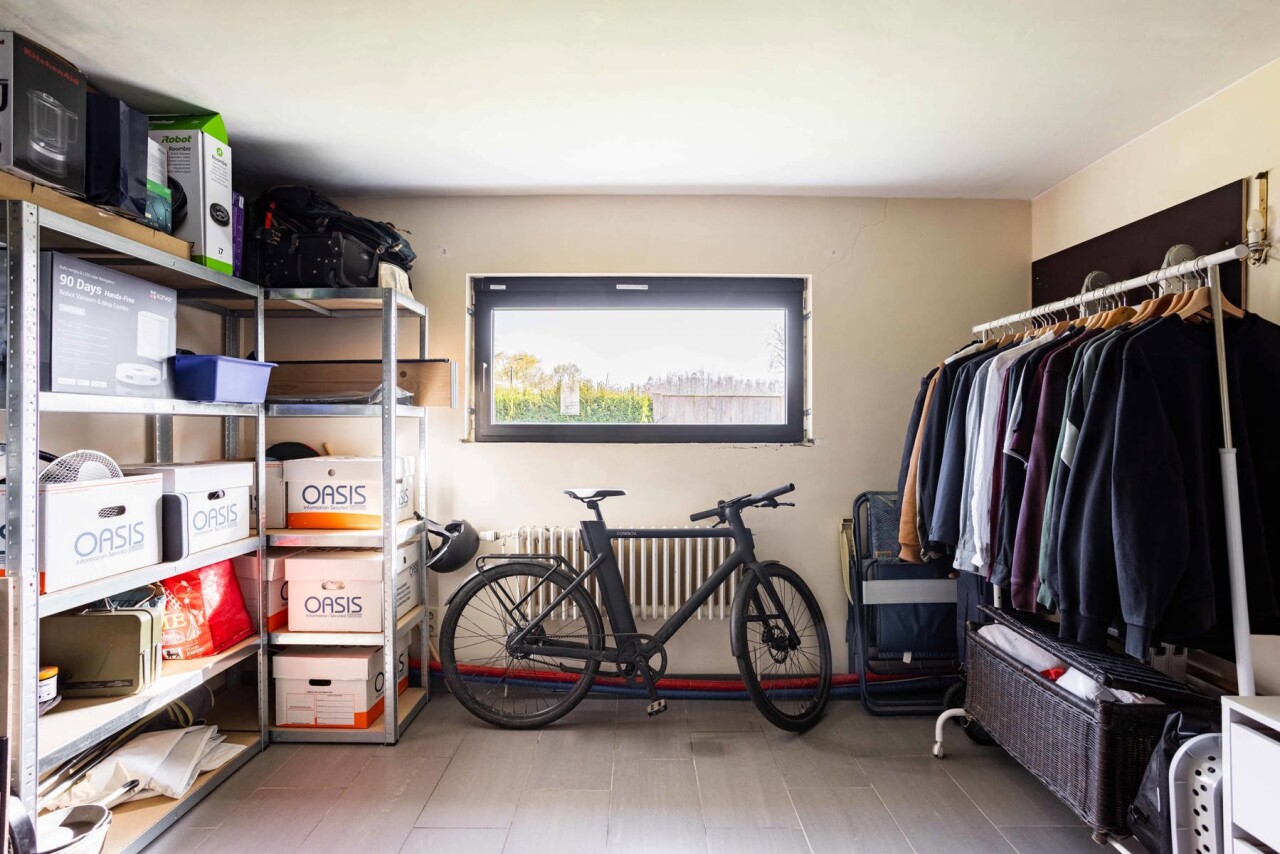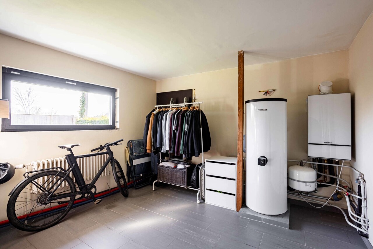 Op het gelijkvloers bevinden zich verder een gastentoilet, een wasruimte, een ruime polyvalente kamer (16 m² – vroeger keuken), een grote berging (14 m²) en de badkamer.