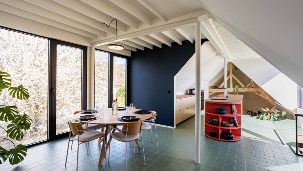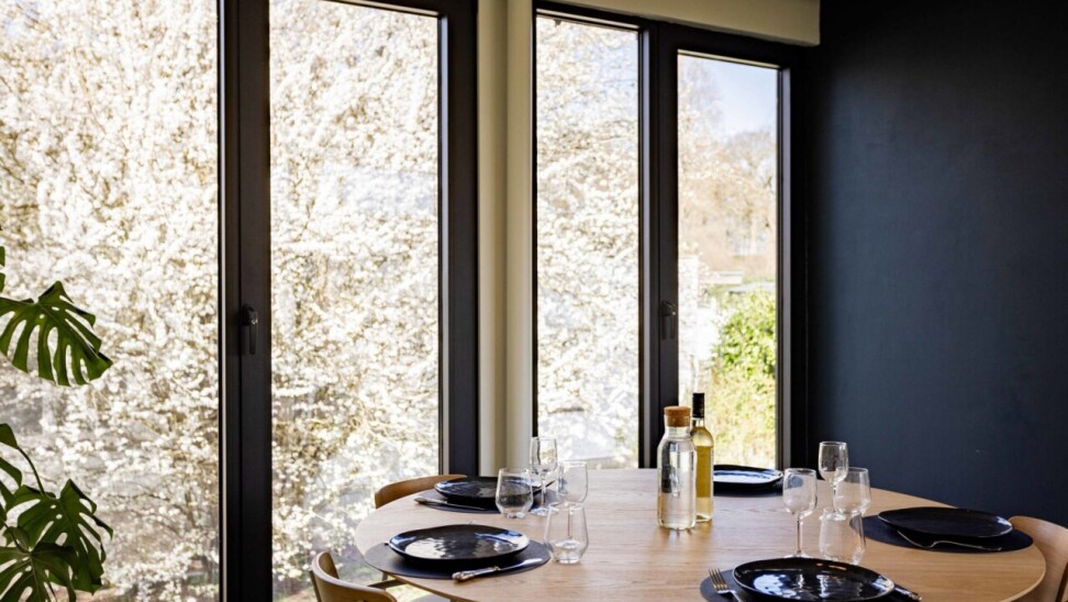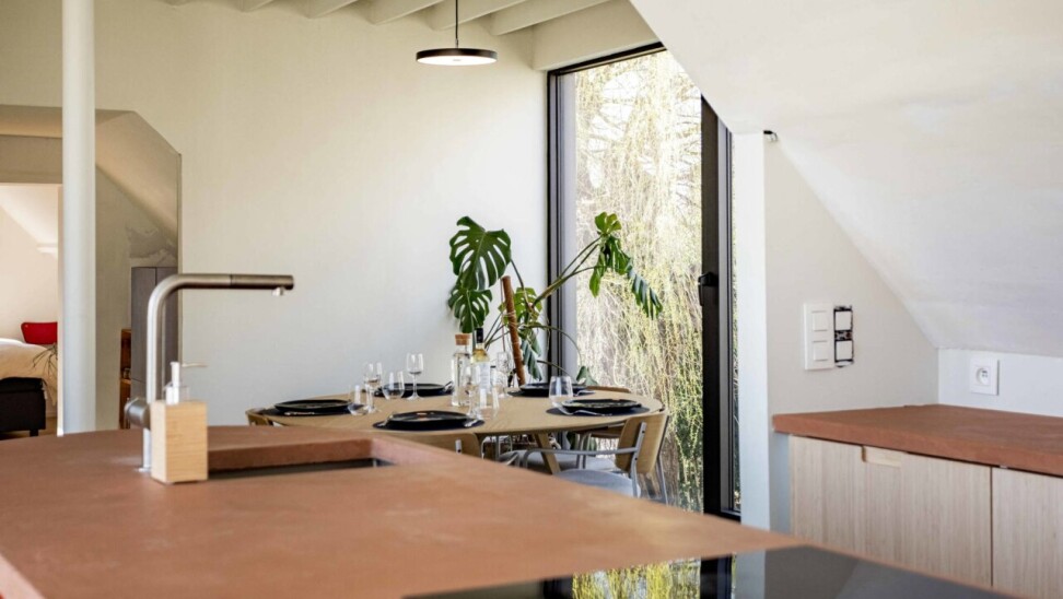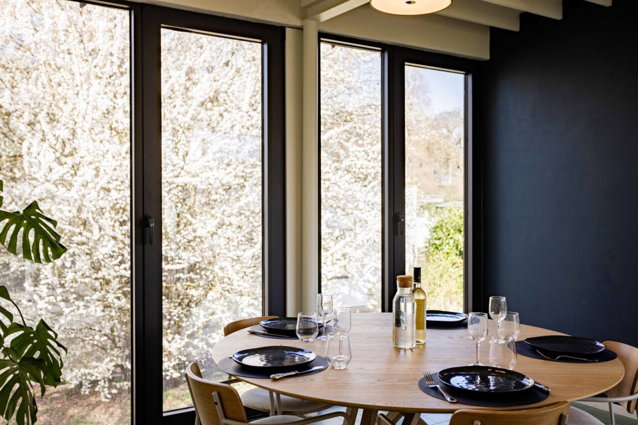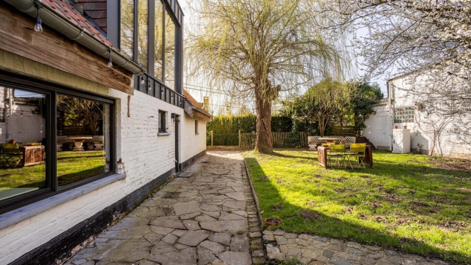Nog vóór u de woning betreedt, springt de bijzondere gevel meteen in het oog. De combinatie van strakke raampartijen en een warme, landelijke architectuur geeft het geheel een tijdloze en karaktervolle uitstraling.