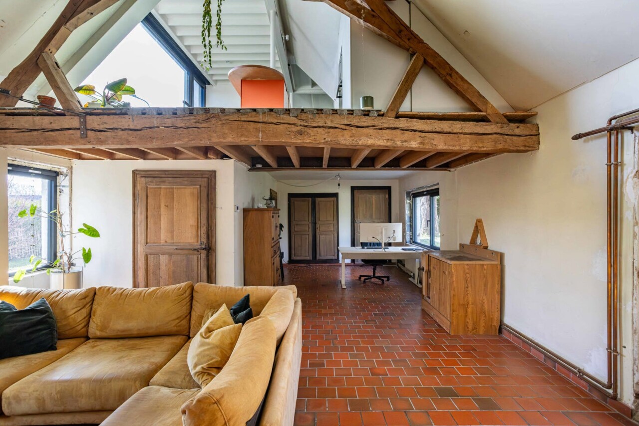 De woning werd bovendien op belangrijke punten vernieuwd: nieuw dakgebinte (2019), nieuwe ramen en verwarmingsketel (2025)