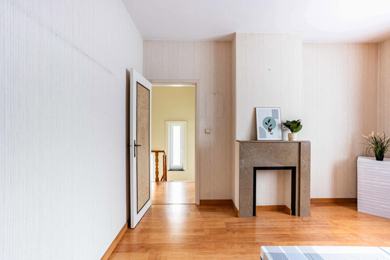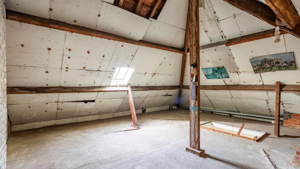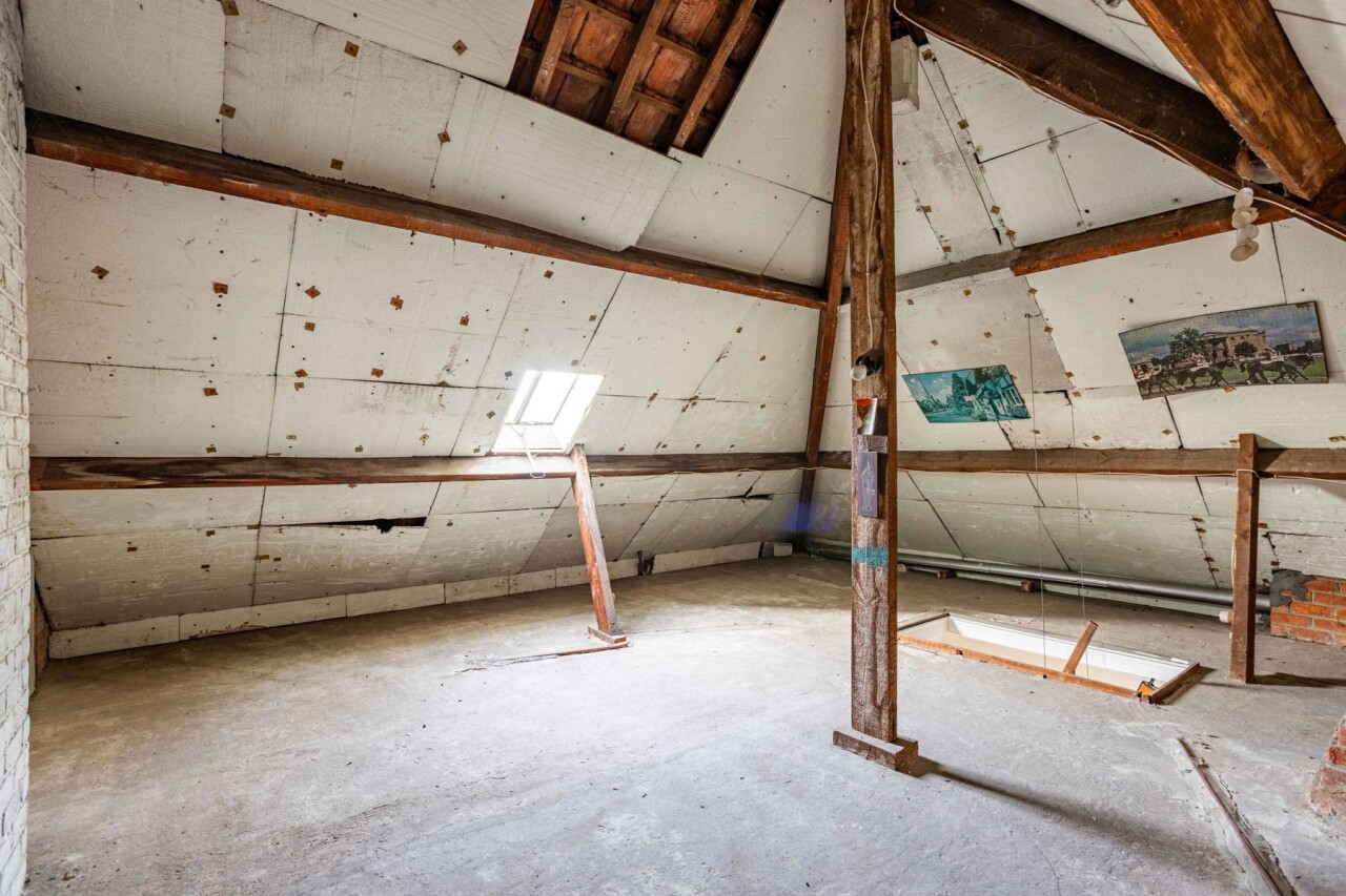 De zolderverdieping, momenteel bereikbaar via een uitschuifbare trap, kan perfect ingericht worden als 4e slaapkamer mét vaste trap.