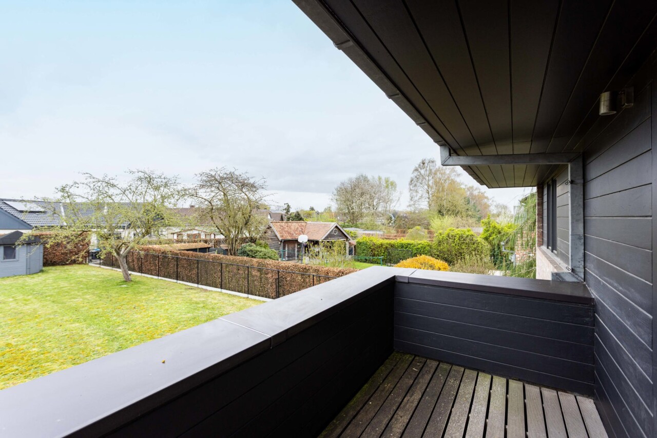 Op het eerste verdiep vinden we 3 kamers (12 - 12,5 en 16m²) waarbij de master bedroom voorzien is van een aangenaam balkon. Ideaal om rustig te ontwaken. Verder beschikt dit verdiep over een badkamer met ligbad & douche en een dressing.