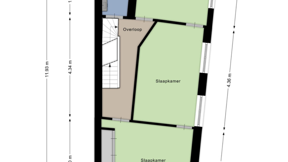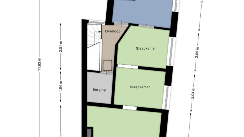 Op de derde verdieping vinden we een volledig ingerichte studio (33m²) met keuken, douche, toilet en twee slaapkamers.