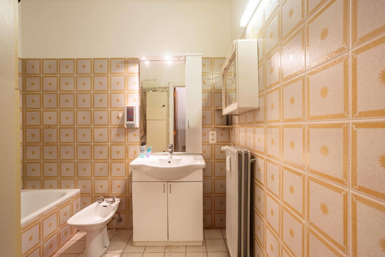 Aan de voorzijde van het appartement vinden we twee slaapkamers ( 11m² en 9m²), de badkamer met ligbad en een apart toilet.