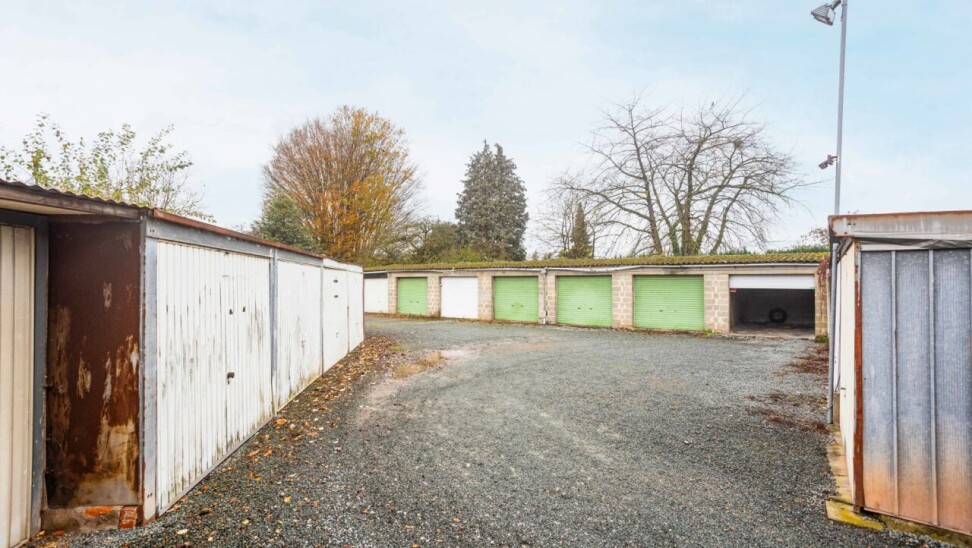 Het achterliggende gedeelte omvat 19 garageboxen, waarvan 15 vergund. Het merendeel van deze garageboxen is momenteel verhuurd, wat zorgt voor een stabiel rendement.