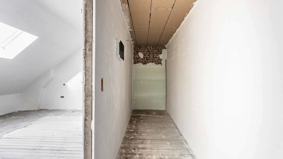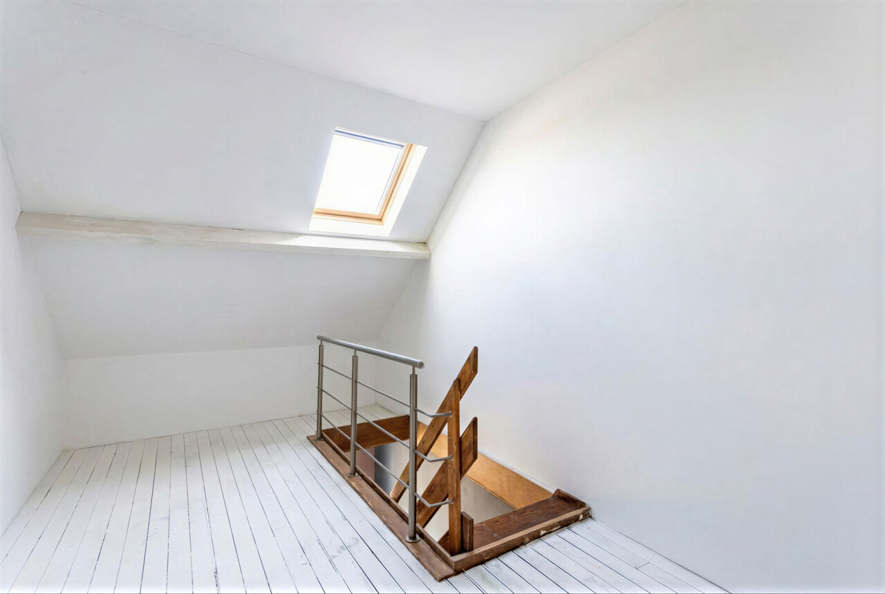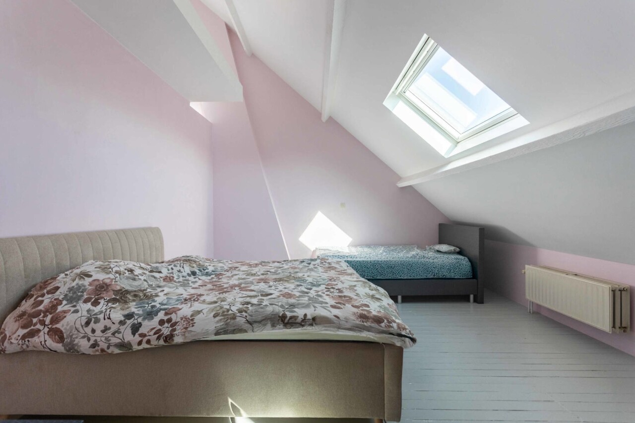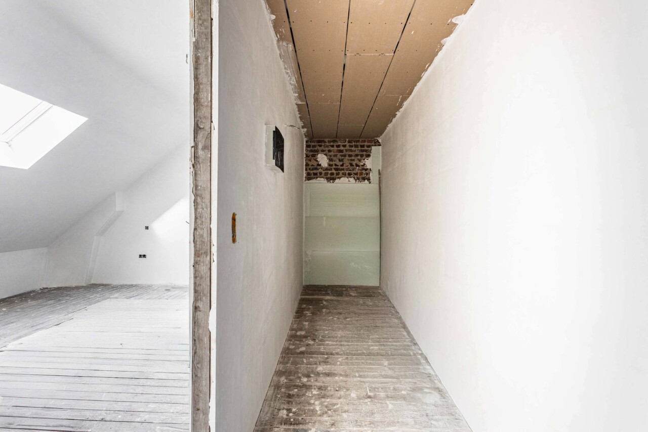 Via de vaste trap komt men op de zolderverdieping (90m²) waar verschillende indeling en opfrissingswerken werden uitgevoerd.