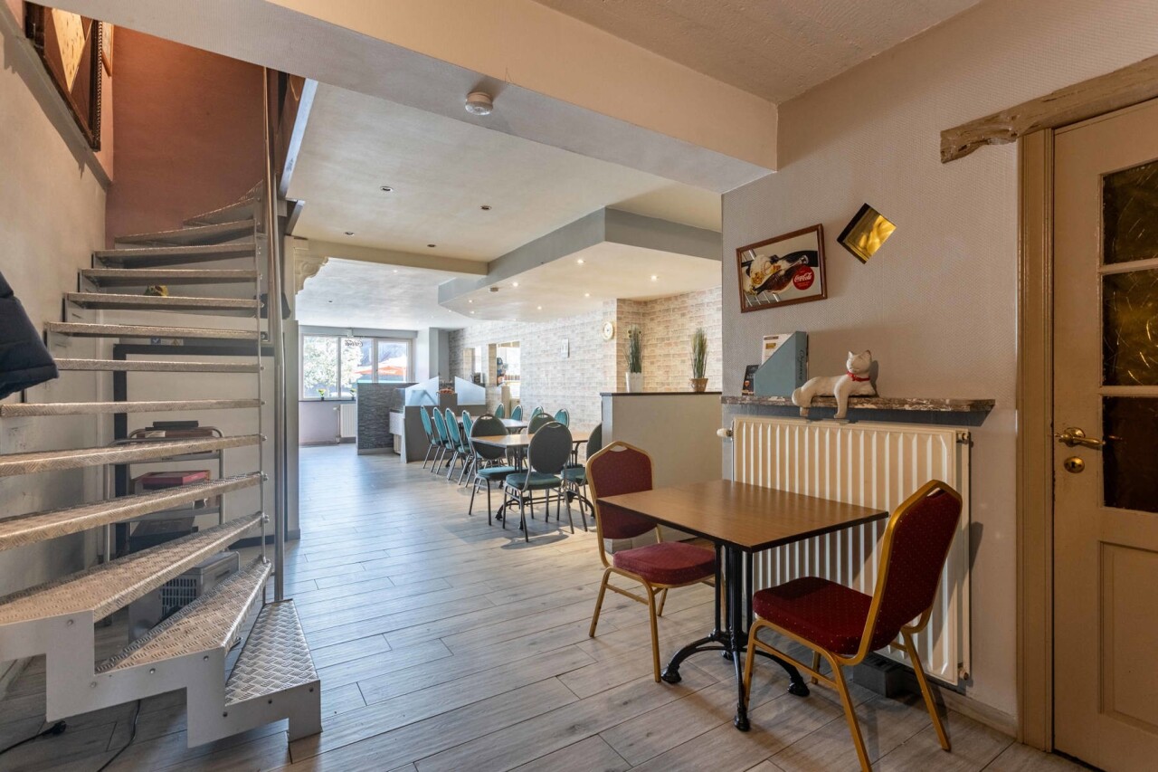 Momenteel wordt er in deze handelswoning een frituur uitgebaat, maar indien gewenst en mits kleine aanpassingen kan de gelijkvloers van 167m² omgetoverd worden tot een ruimte met andere doeleinden en met een achterliggende (feest)zaal van 66m² als grote surplus. Ben je toch een friturist in hart en nieren? Dan kan men meteen aan de slag, want ook de inboedel maakt deel uit van de verkoop.