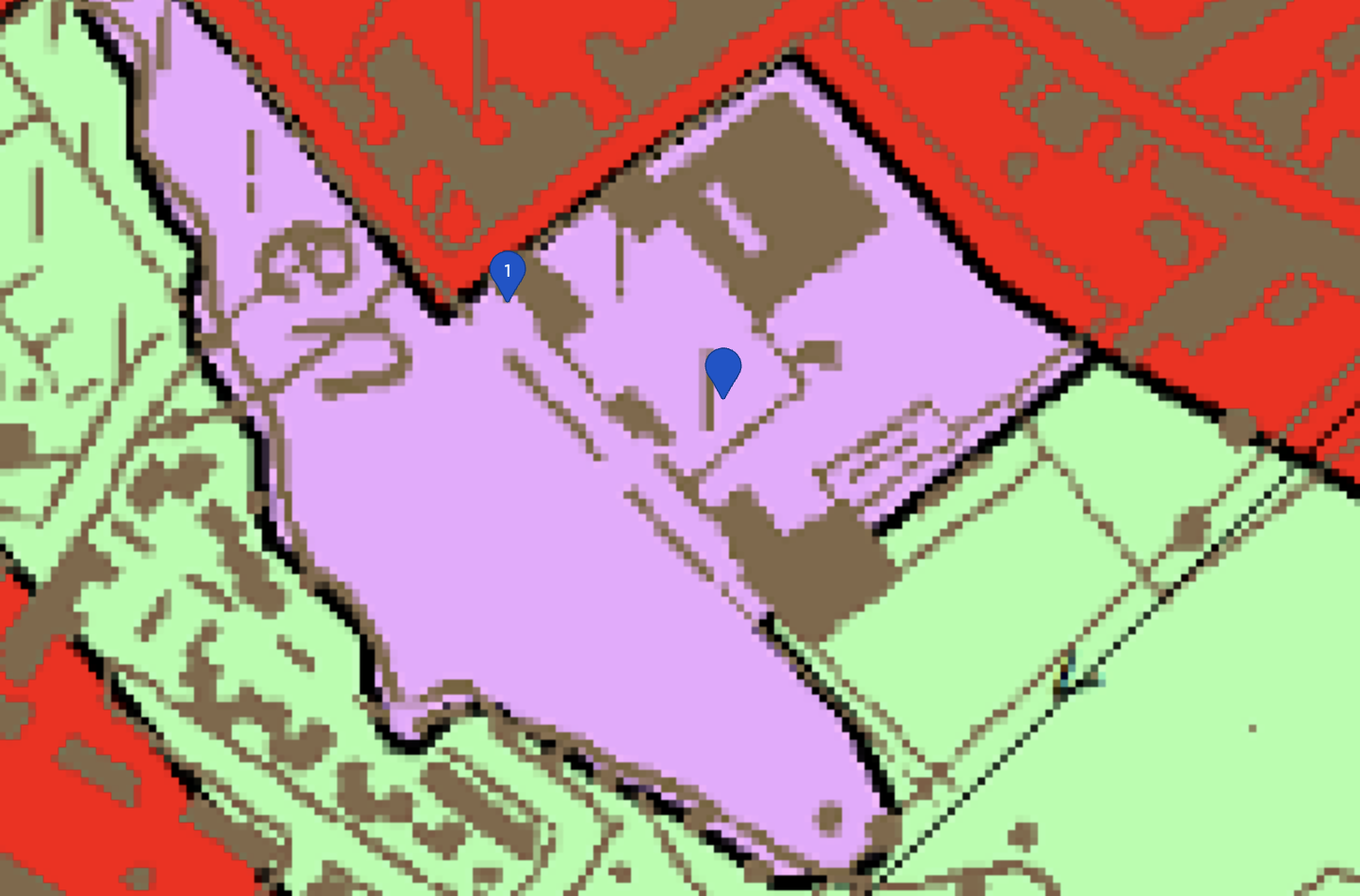 Het perceel beschikt over een brede toegangsweg van 10 meter via de Langestraat en een lange oprijlaan tot op het terrein zelf.