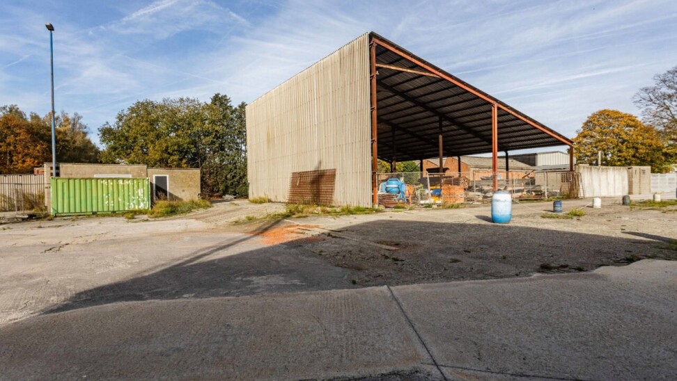 Overdekte opslagruimte met kantoorgebouw op ruim perceel