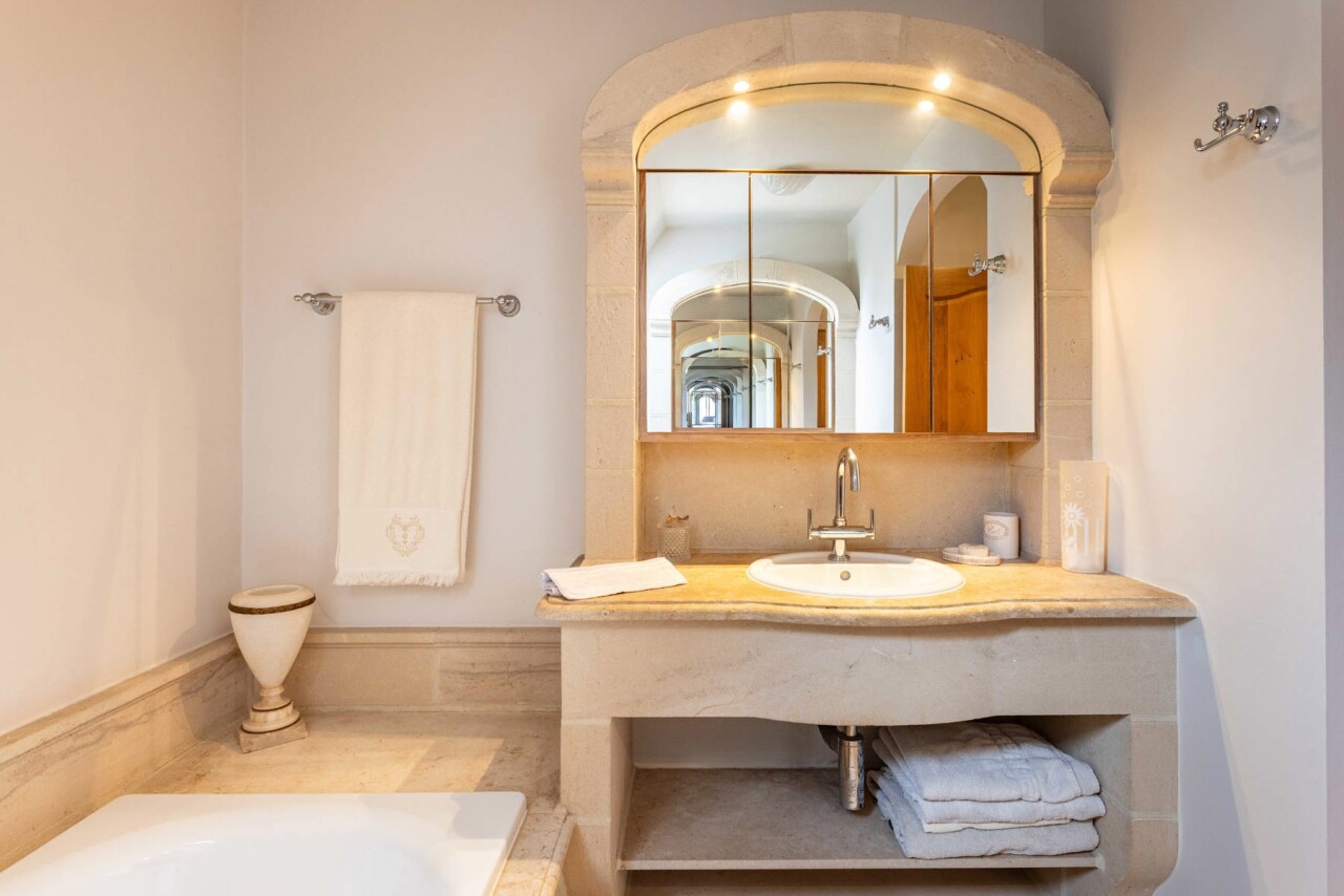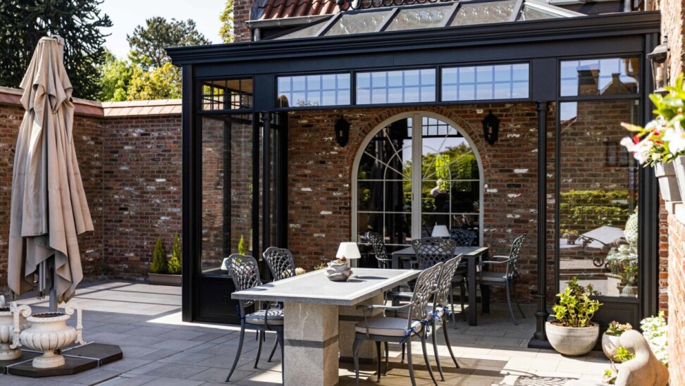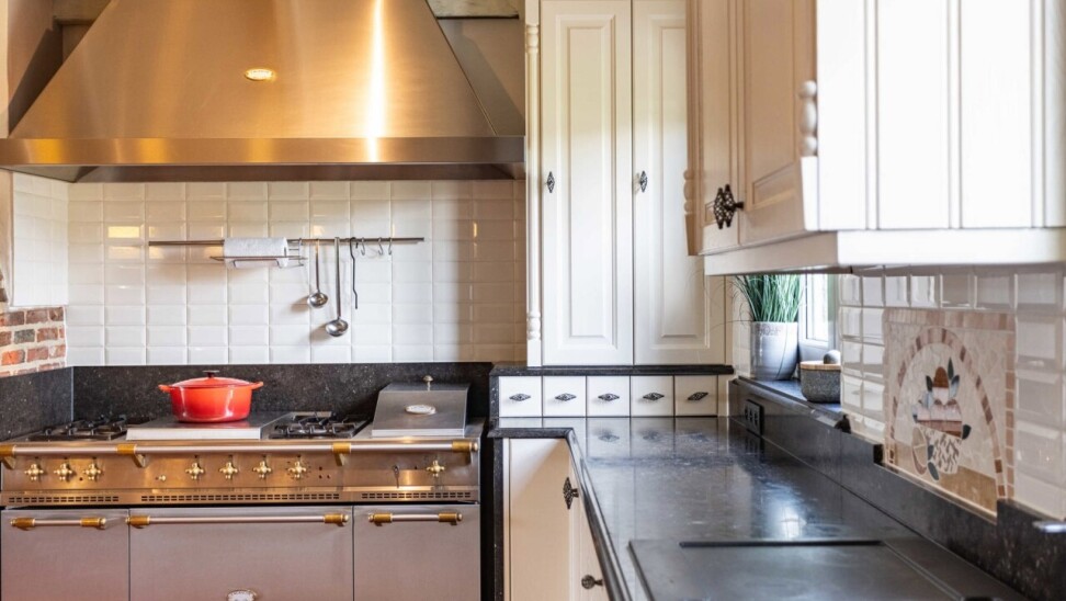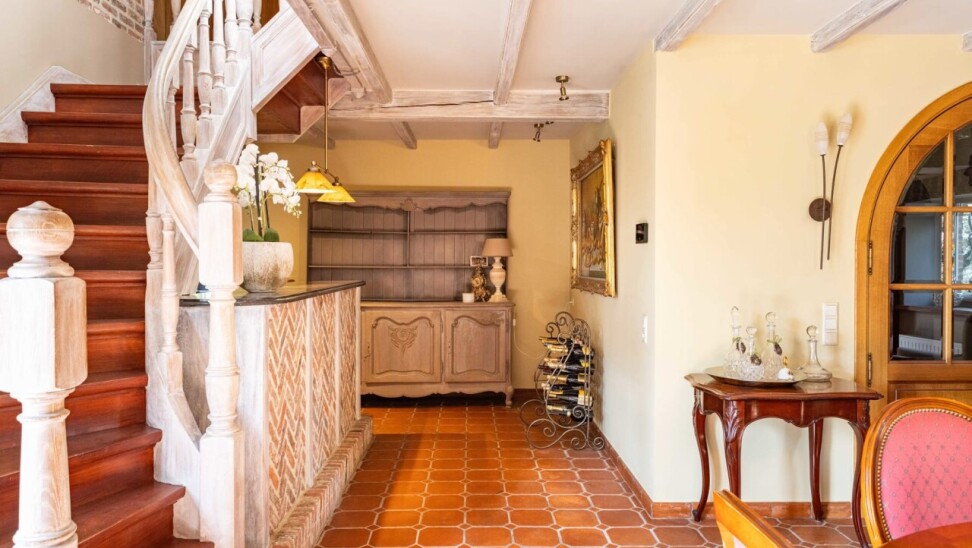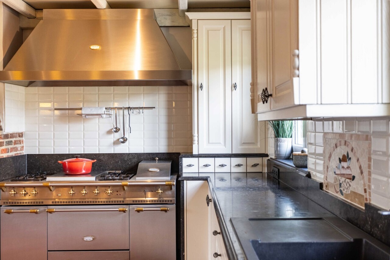 De ruime leefkeuken is volledig uitgerust en afgewerkt met kwalitatieve materialen. Vanuit de keuken heeft u directe toegang tot de pergola en het zonnige terras van 75 m², dat geniet van optimale privacy en een gunstige zuidoriëntatie.