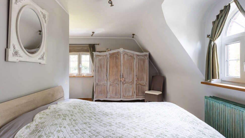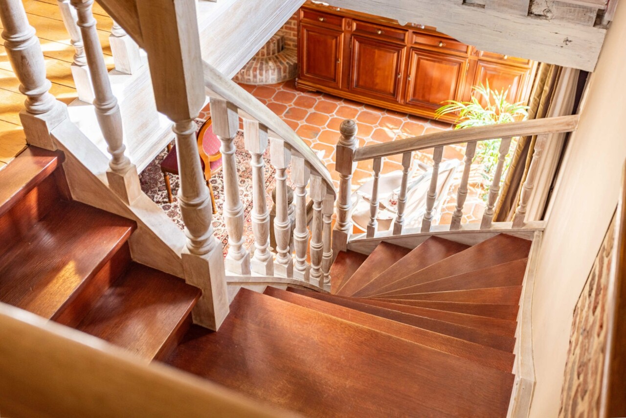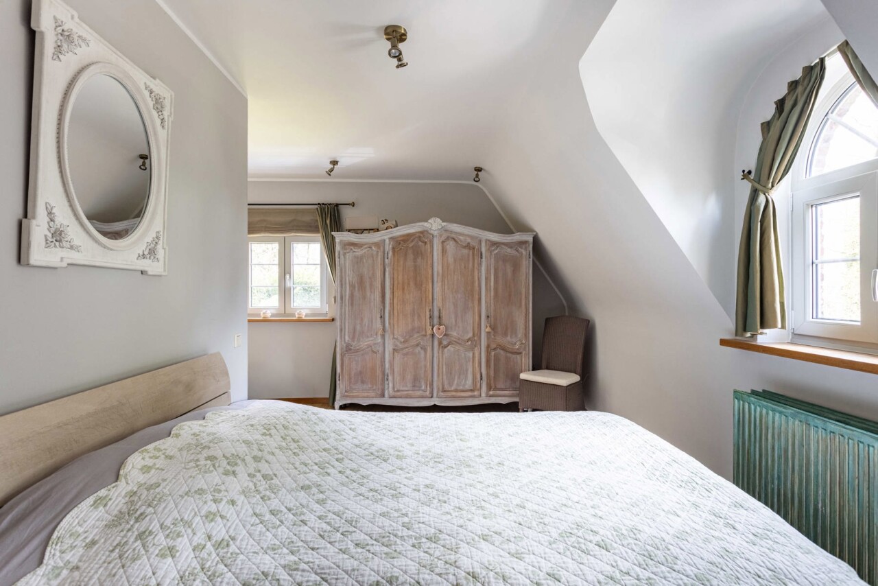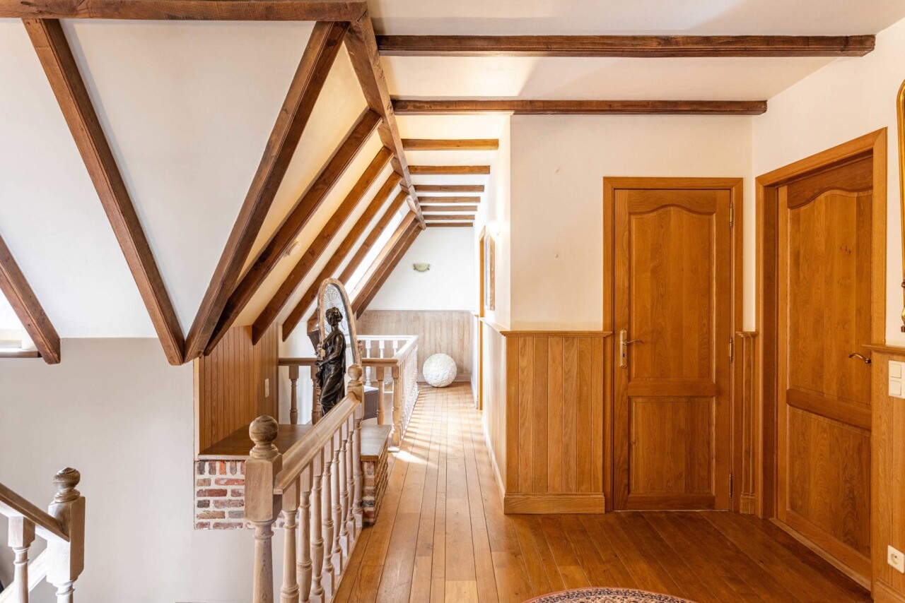 Op het eerste verdiep bevinden zich drie ruime slaapkamers (18 m², 19 m² en 12 m²), een badkamer met ligbad, een aparte douchekamer en een afzonderlijk toilet. De mezzanine vormt hier een absolute meerwaarde en creëert een mooie open verbinding met de woonkamer.