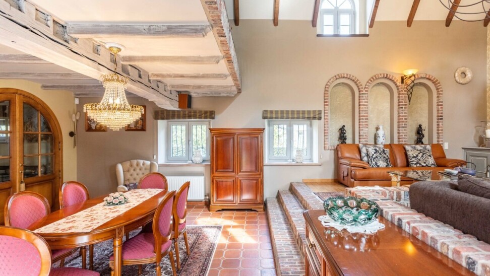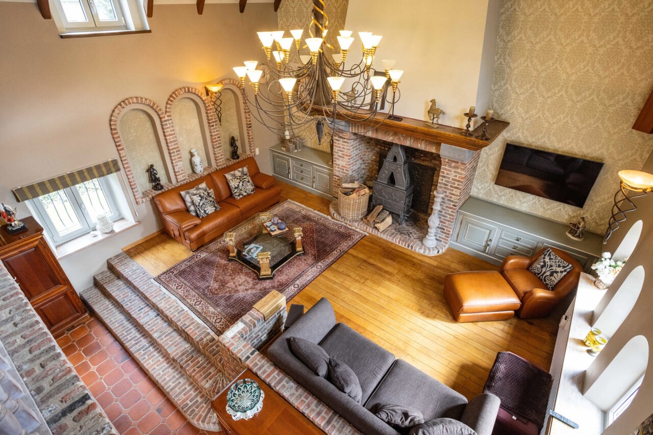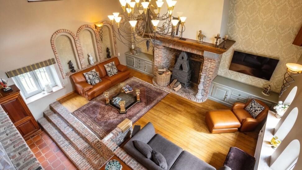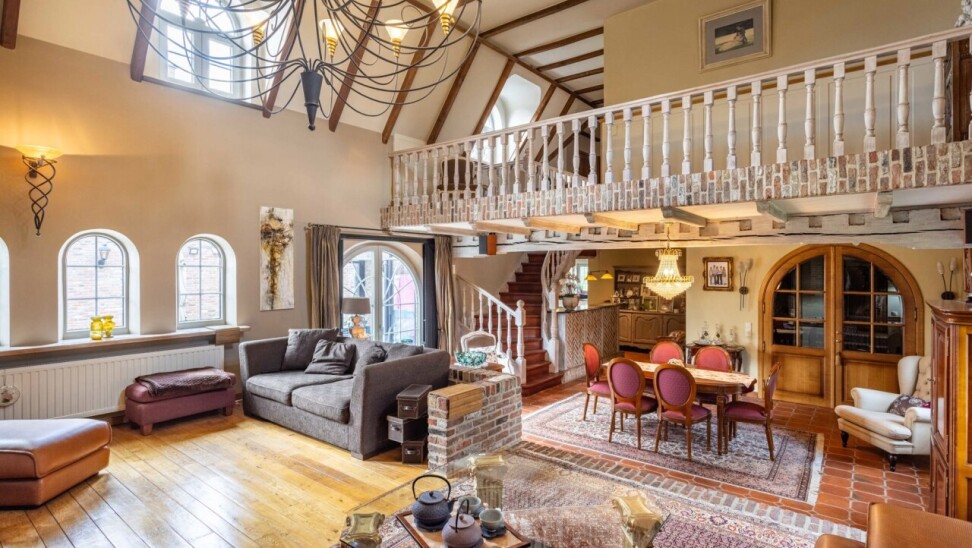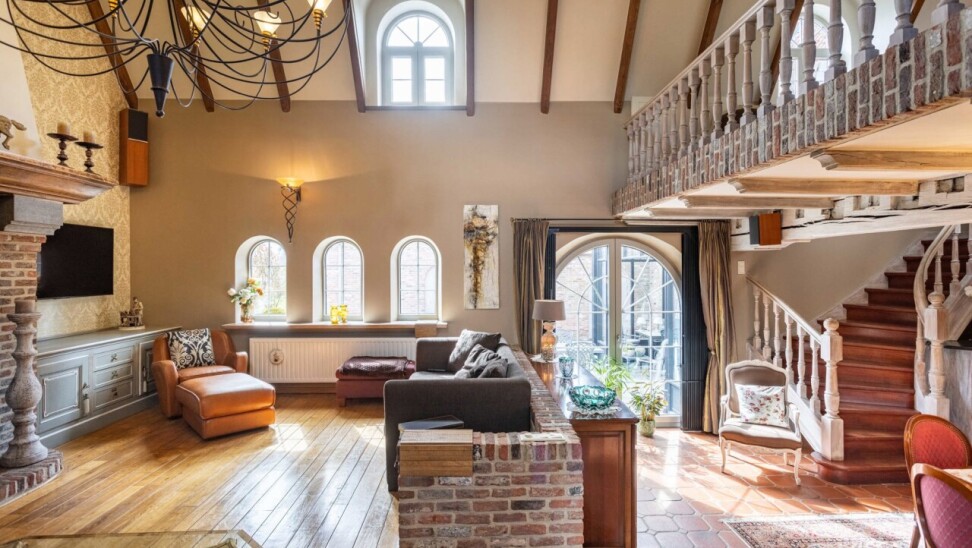 Via de ruime inkomhal met ingemaakte kasten, gastentoilet en een aparte bureauruimte betreden we de woning. Aansluitend bevindt zich de indrukwekkende woon- en eetkamer van maar liefst 62 m², met een plafondhoogte van 6 meter in de leefruimte, wat zorgt voor een bijzonder ruimtelijk gevoel.