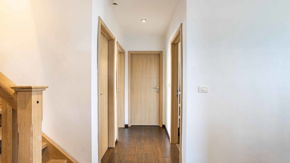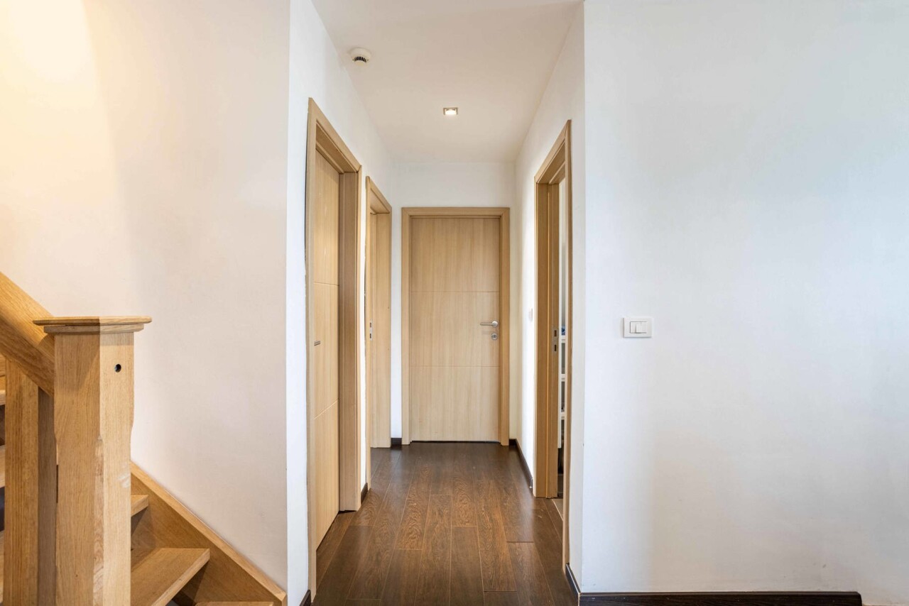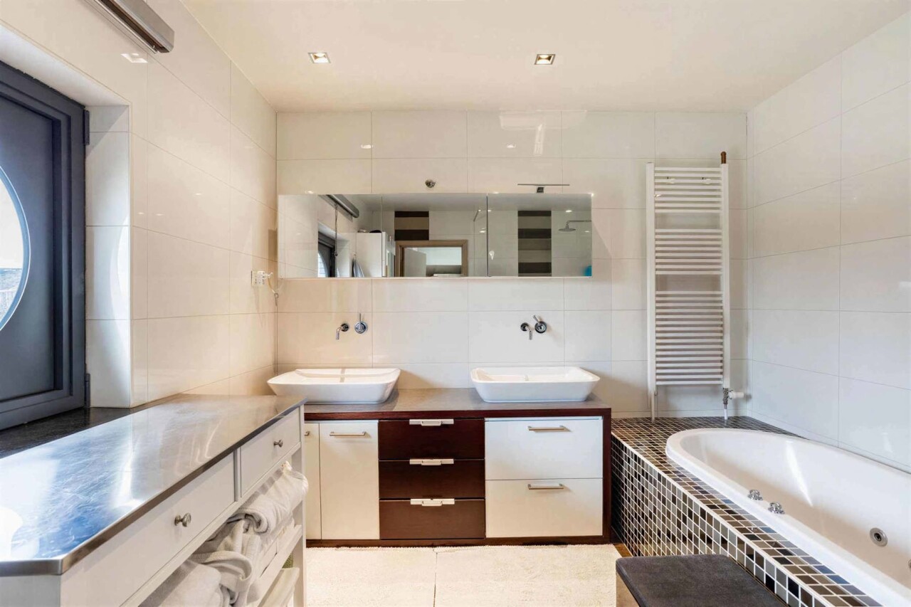 Op het eerste verdiep vinden we 4 volwaardige slaapkamers (22-20-14 en 14m²) waarvan de grootste slaapkamer voorzien is van een ensuite dressing én badkamer met ligbad en douche. Verder vinden we op dit verdiep nog een douchekamer/tweede badkamer.