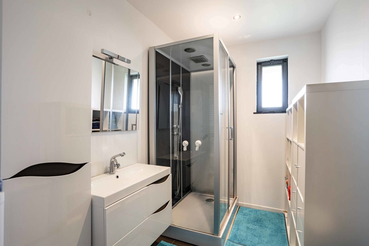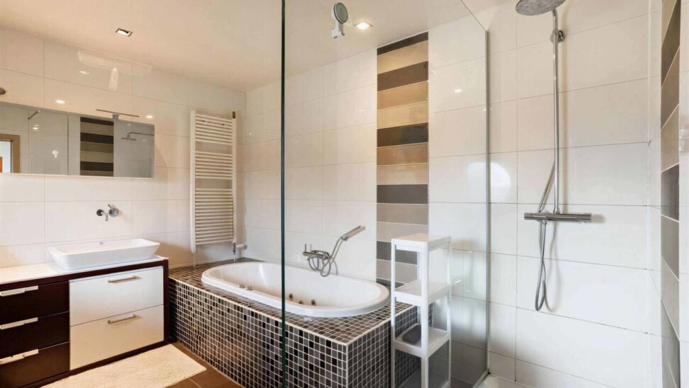 Verder is de woning gedeeltelijk onderkelderd, is ze voorzien van een ruime oprit en doorrit naar de garage achteraan. De woning wordt momenteel verhuurd aan 1.850€ per maand.